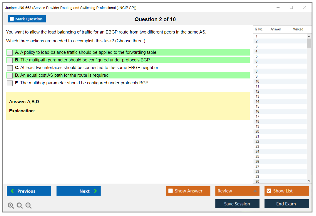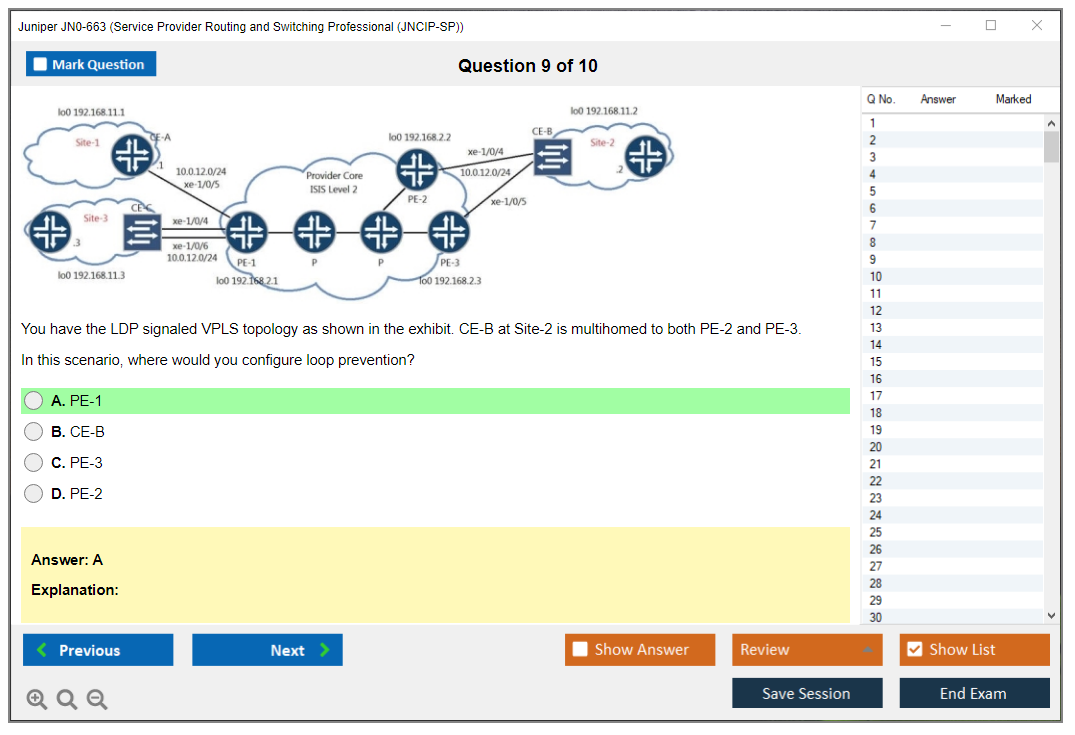 The Juniper JN0-663 exam, also known as the Service Provider Routing and Switching Professional (JNCIP-SP), is designed for experienced networking professionals with advanced knowledge of the Junos operating system and related technologies. It validates the candidate's ability to deploy, configure, manage, and troubleshoot Juniper Networks service provider routing and switching solutions.