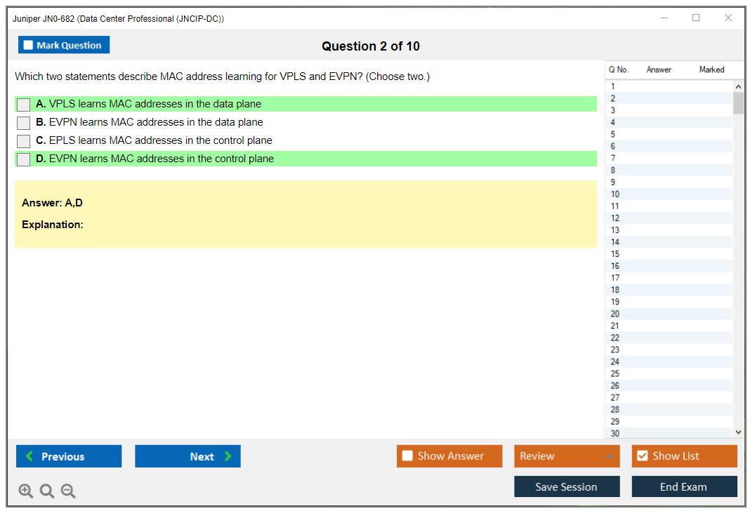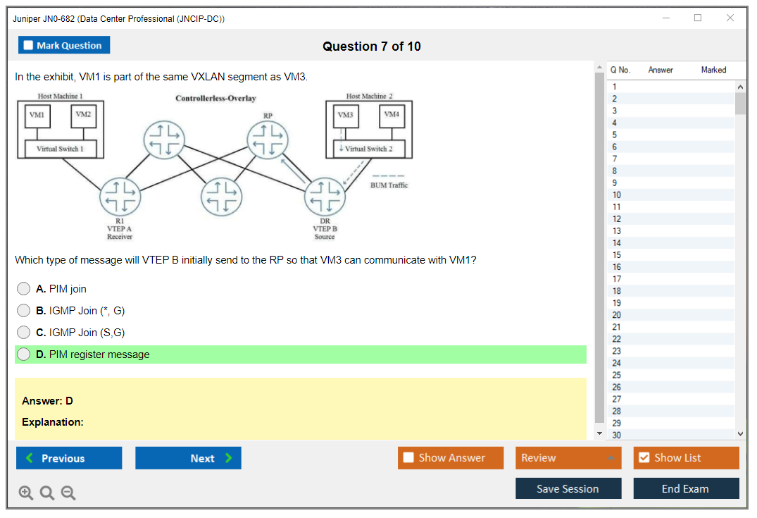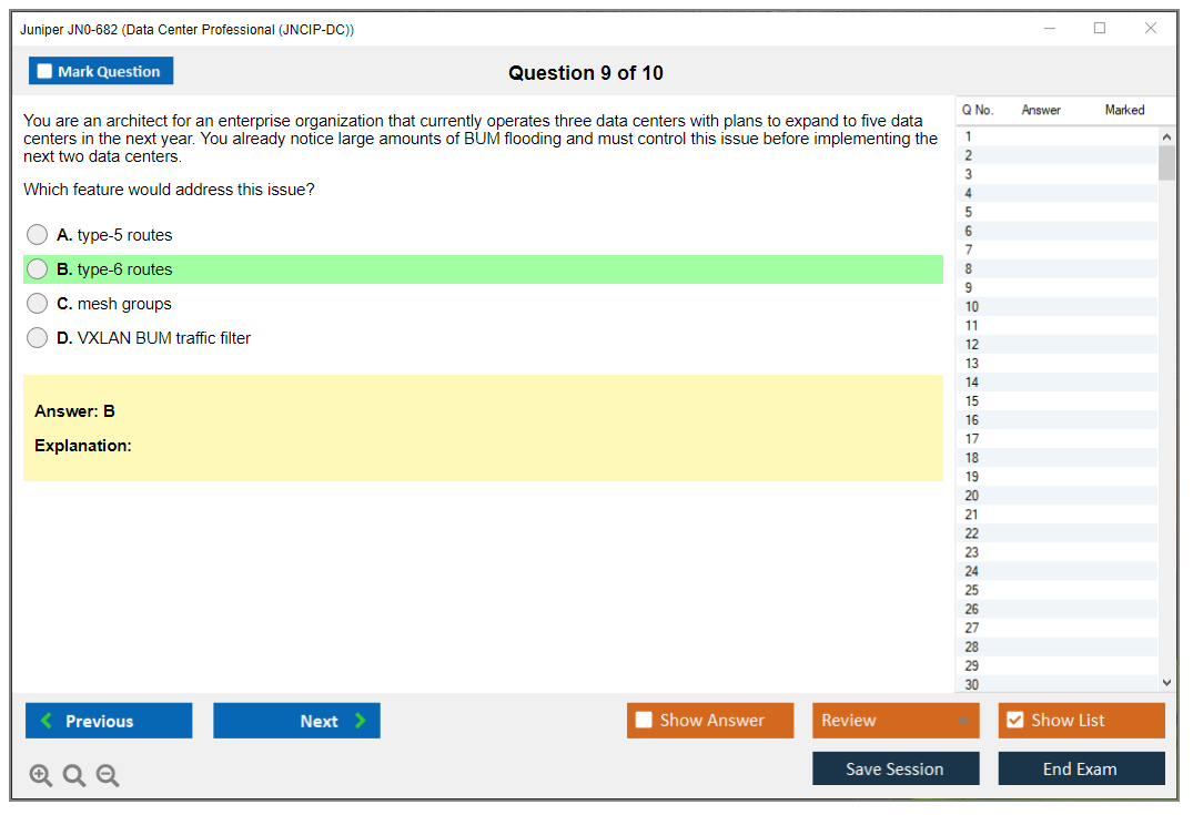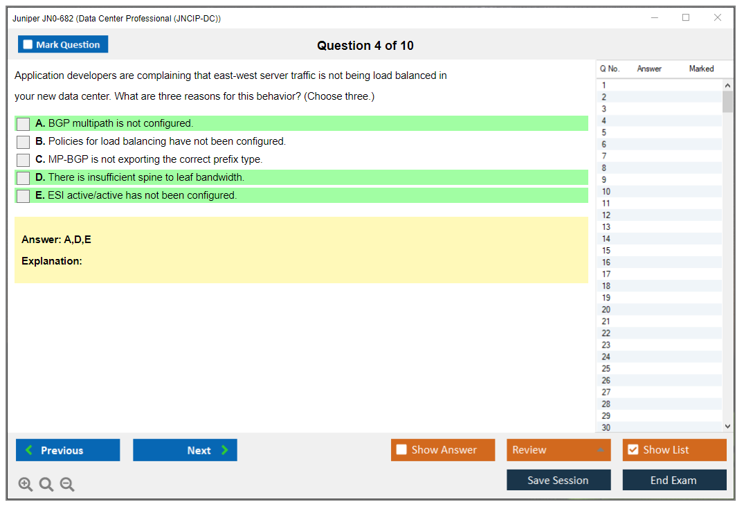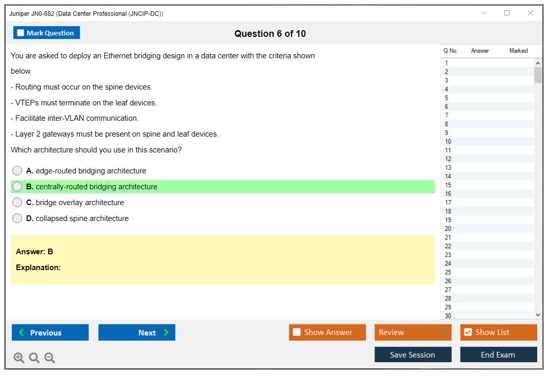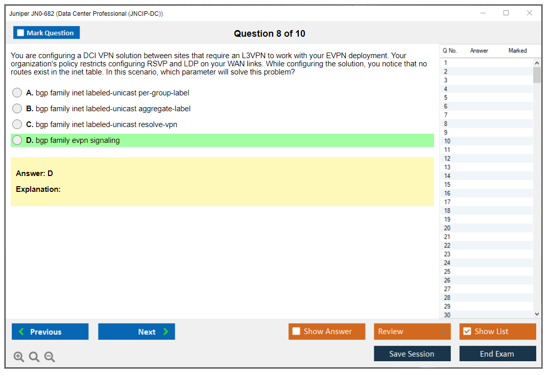 The Juniper JN0-682 exam is a professional-level certification exam that focuses on data center technologies, including Junos software, data center switching, and routing, as well as various protocols and best practices.
