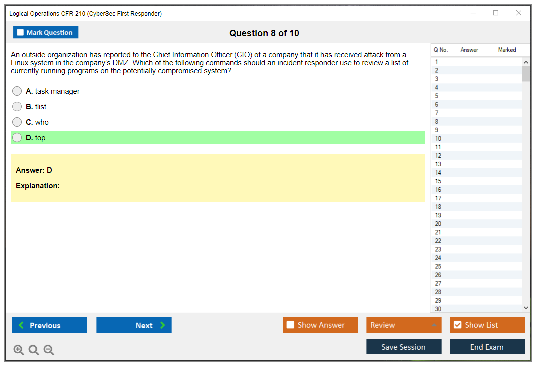 Sample questions for the Logical Operations CFR-210 Exam can be found on the official Logical Operations website or through various study guides and practice test providers.
