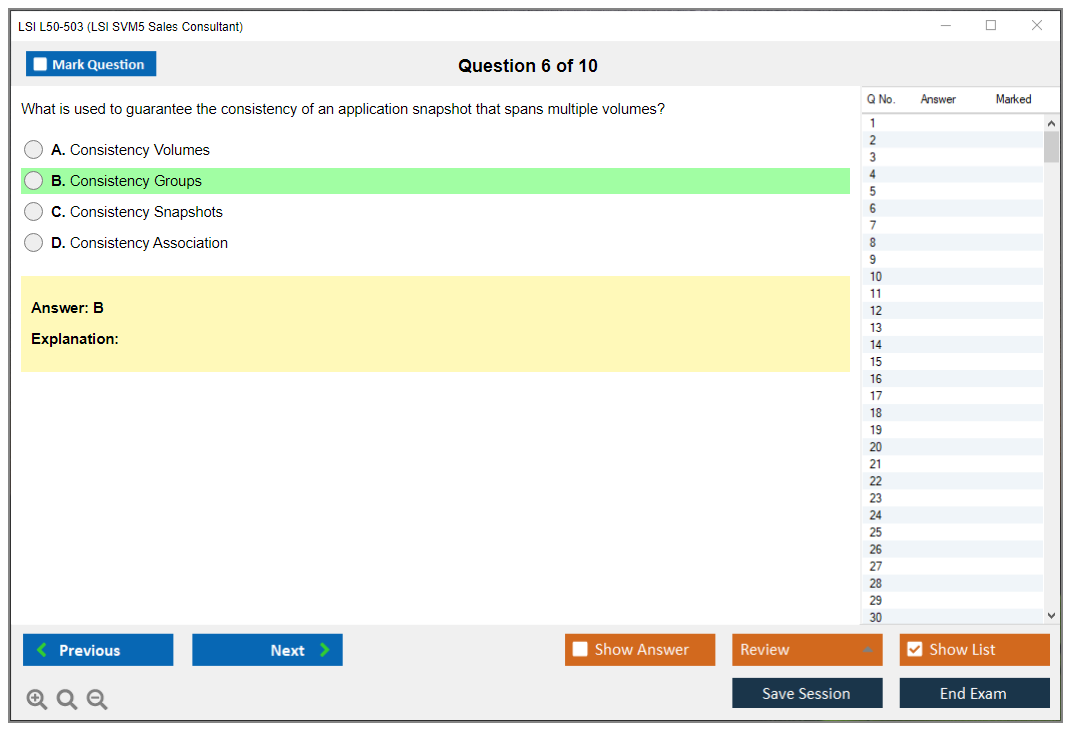 The LSI L50-503 (LSI SVM5 Sales Consultant) exam is designed to test the knowledge and skills of sales consultants in selling LSI SVM5 solutions. It covers various aspects of the product, including features, benefits, and competitive positioning.