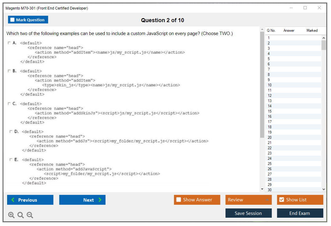 The Magento M70-301 Exam, also known as the Magento Front End Developer Certification Exam, is aimed at professionals who want to demonstrate their expertise in developing and customizing the front-end of Magento-based eCommerce websites.