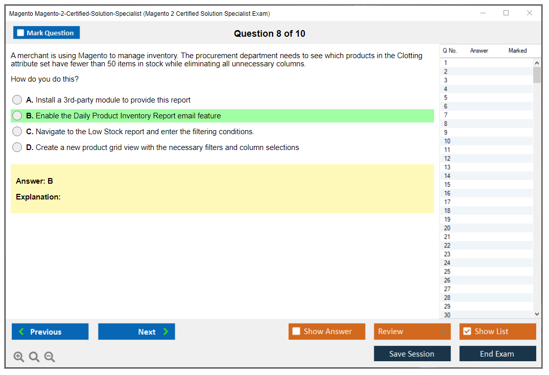 Sample questions for the Magento 2 Certified Solution Specialist Exam can be found on the official Adobe certification website or through various online study resources and practice exams.