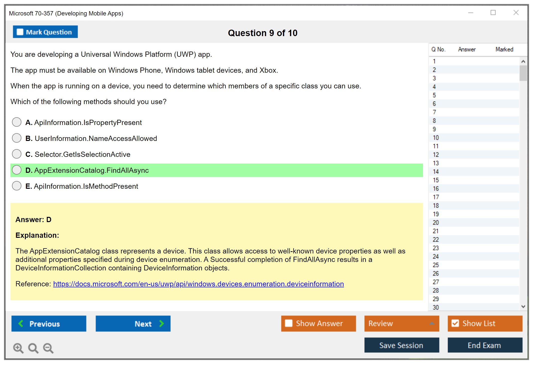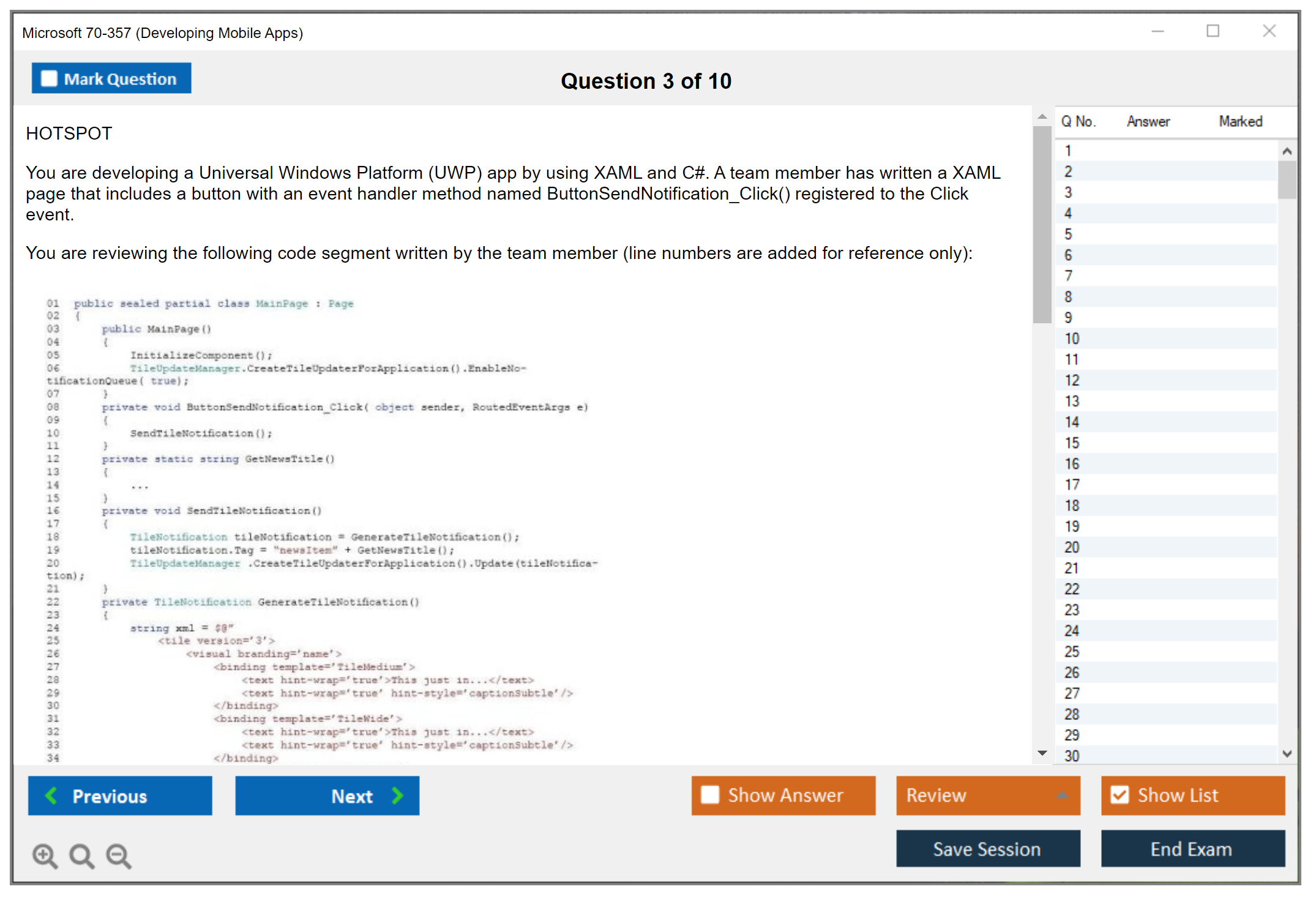 Note: Microsoft 70-357 (Developing Mobile Apps) will not receive any new updates.
