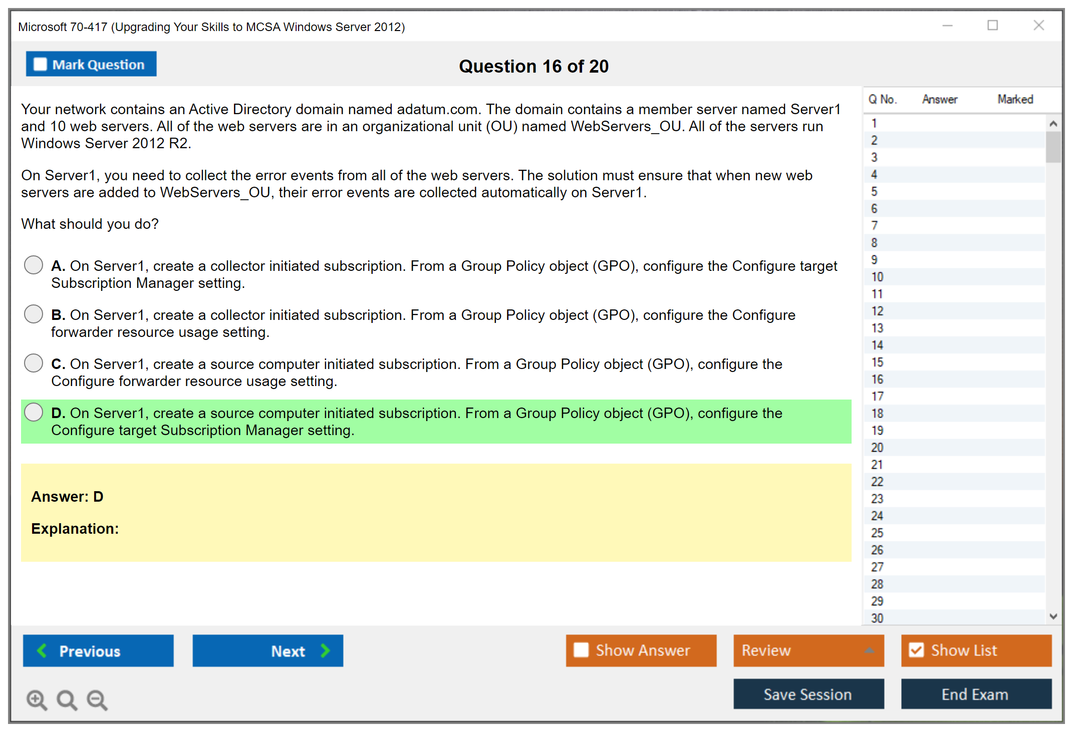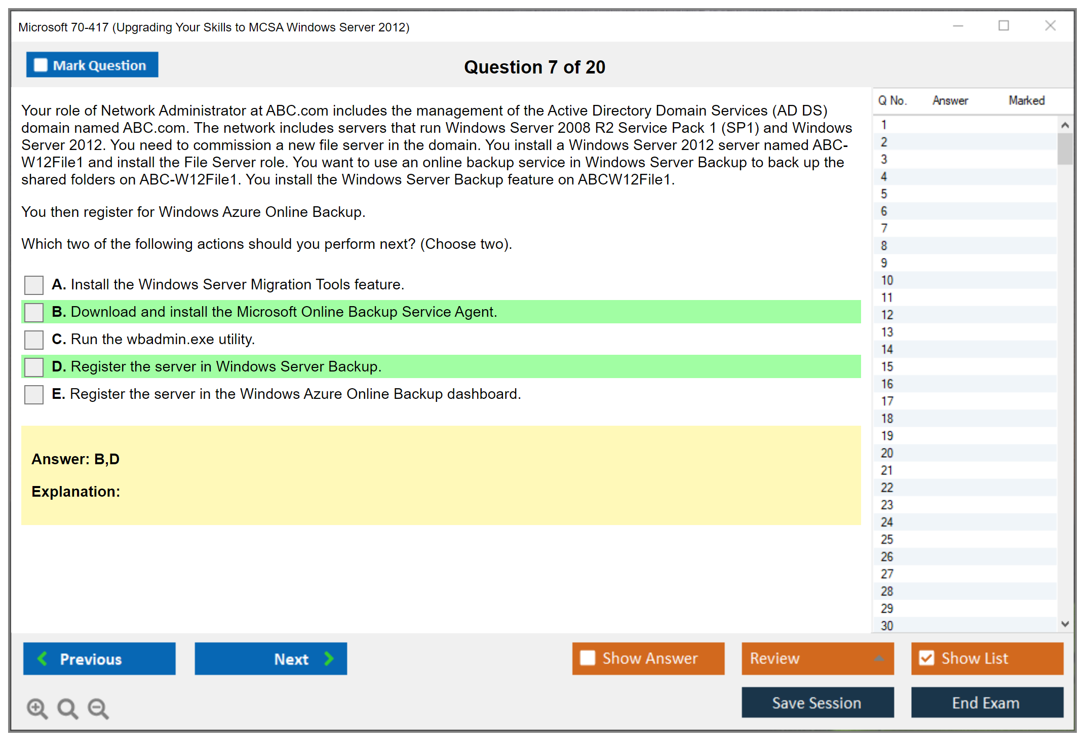 Note: Microsoft 70-417 (Upgrading Your Skills to MCSA Windows Server 2012) will not receive any new updates.