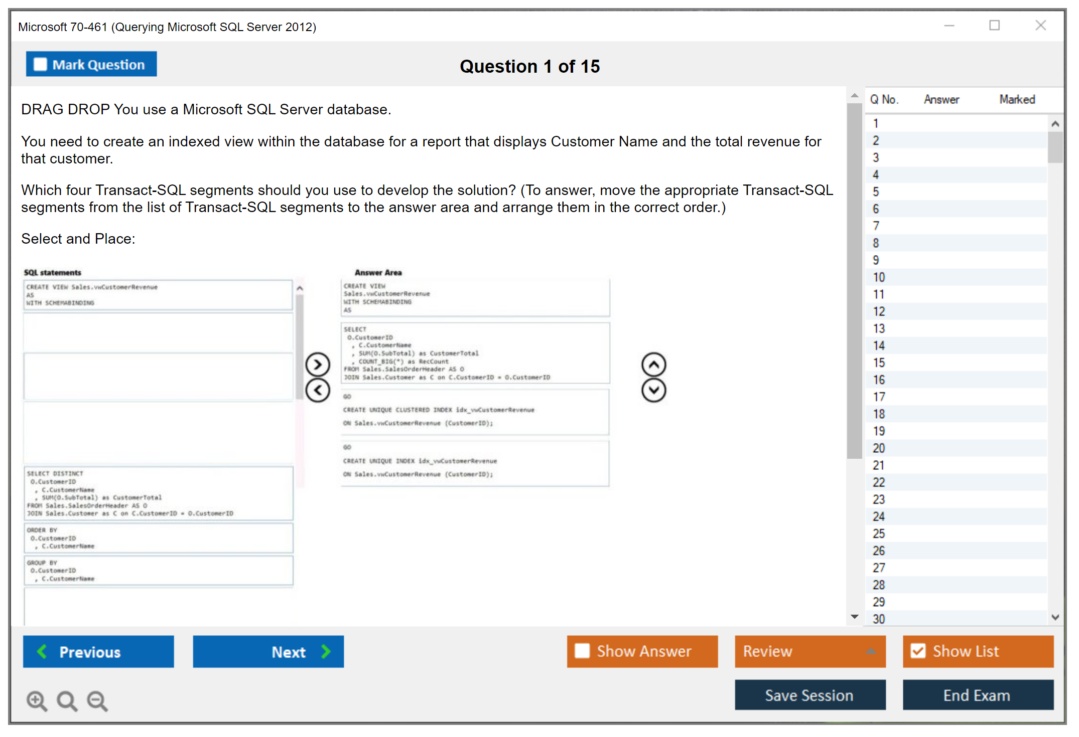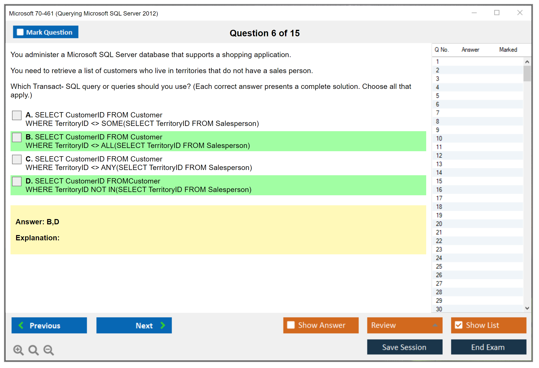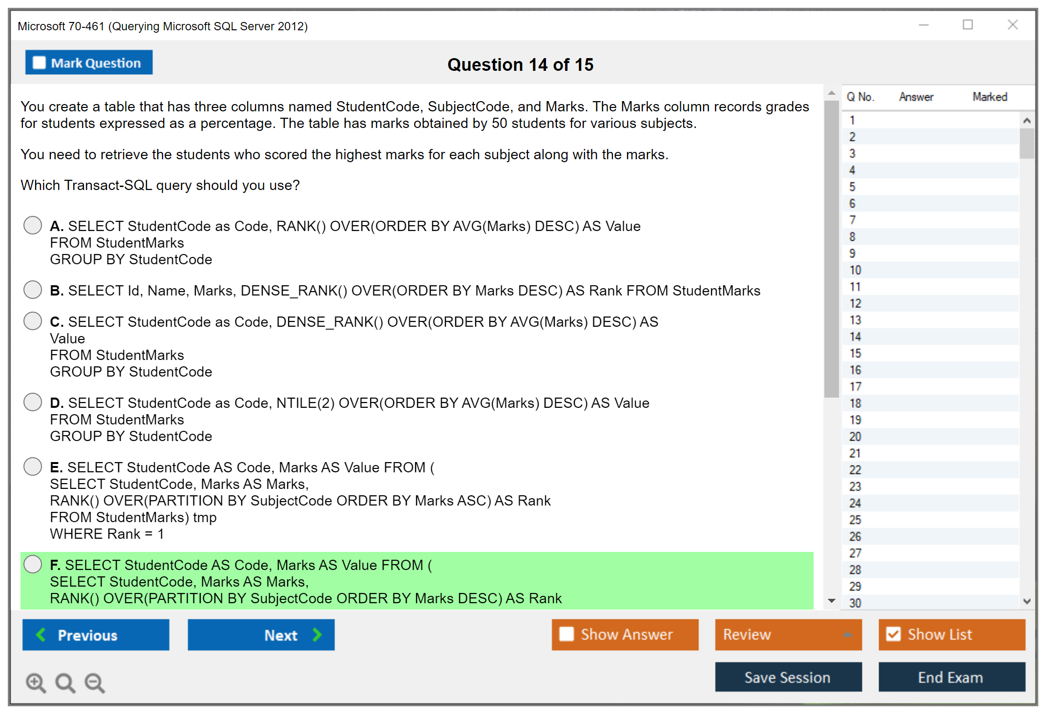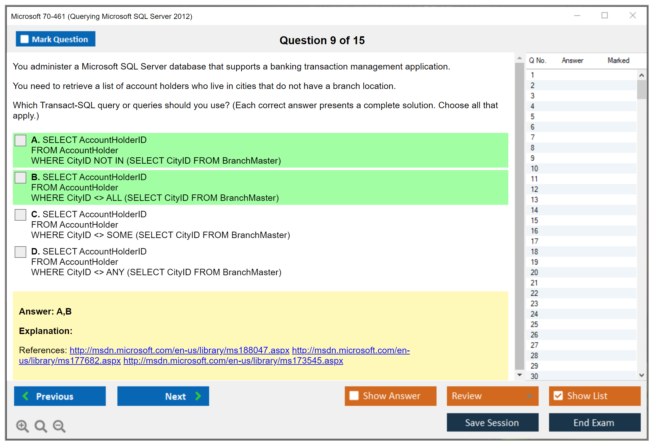 Note: Microsoft 70-461 (Querying Microsoft SQL Server 2012) will not receive any new updates.
