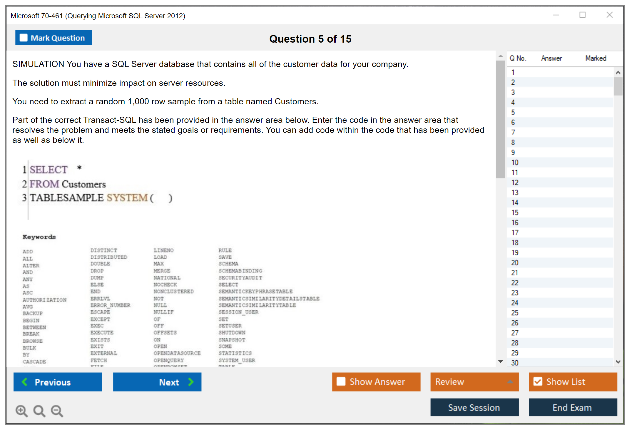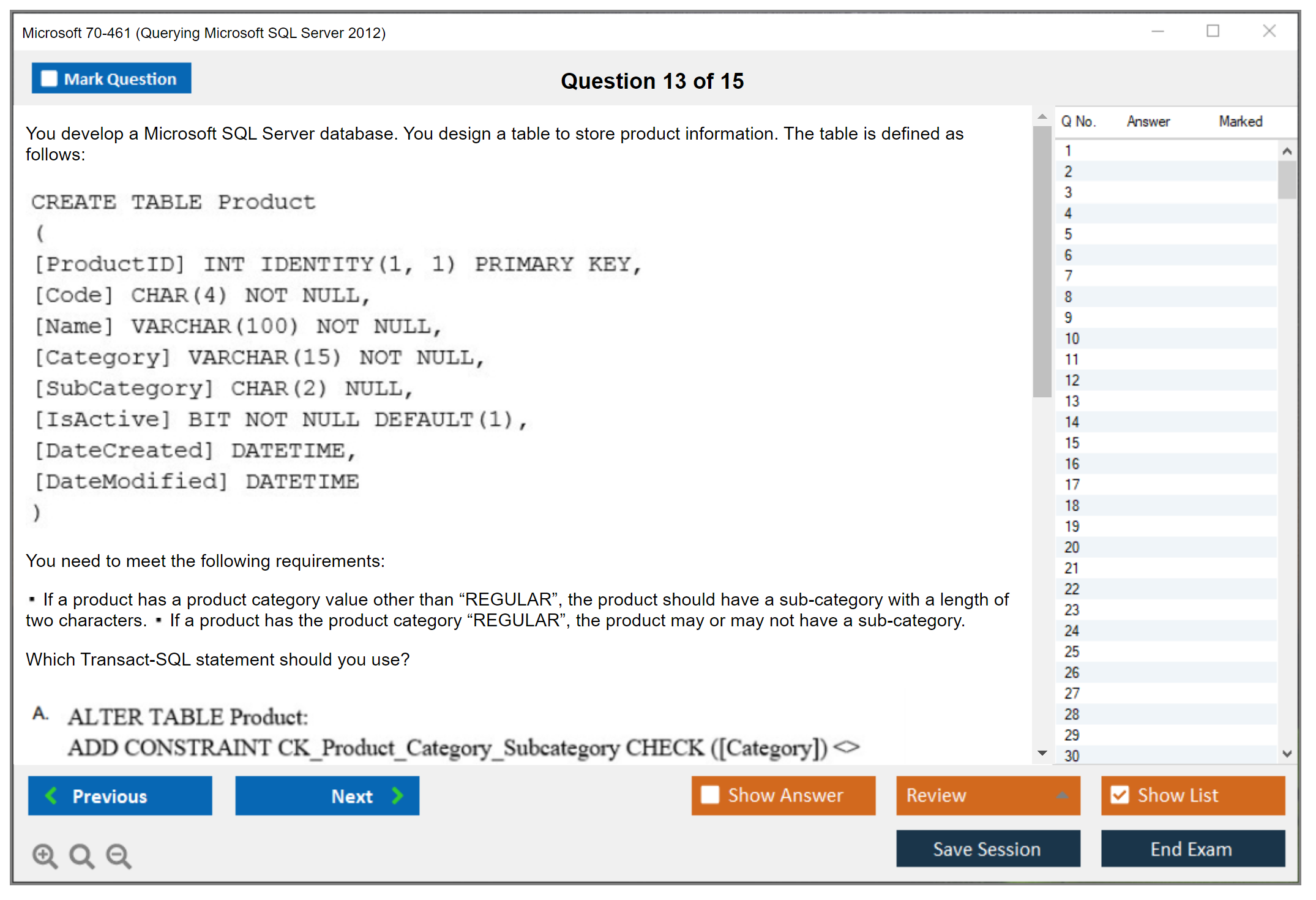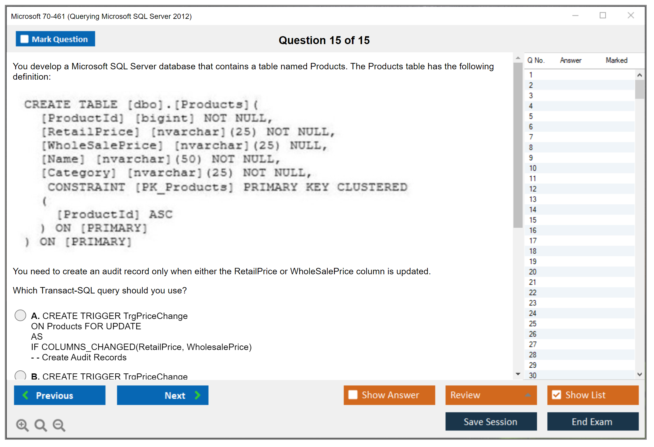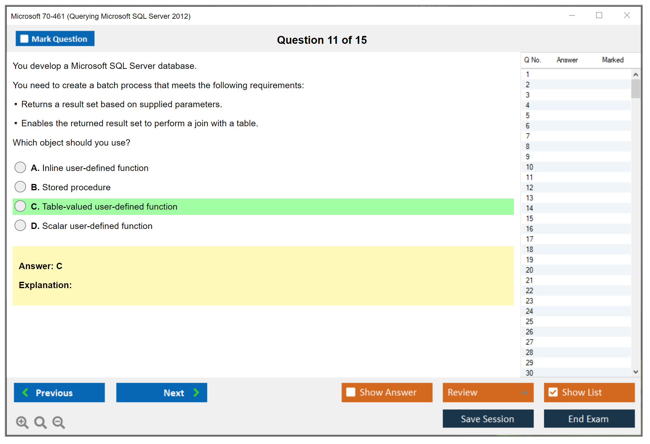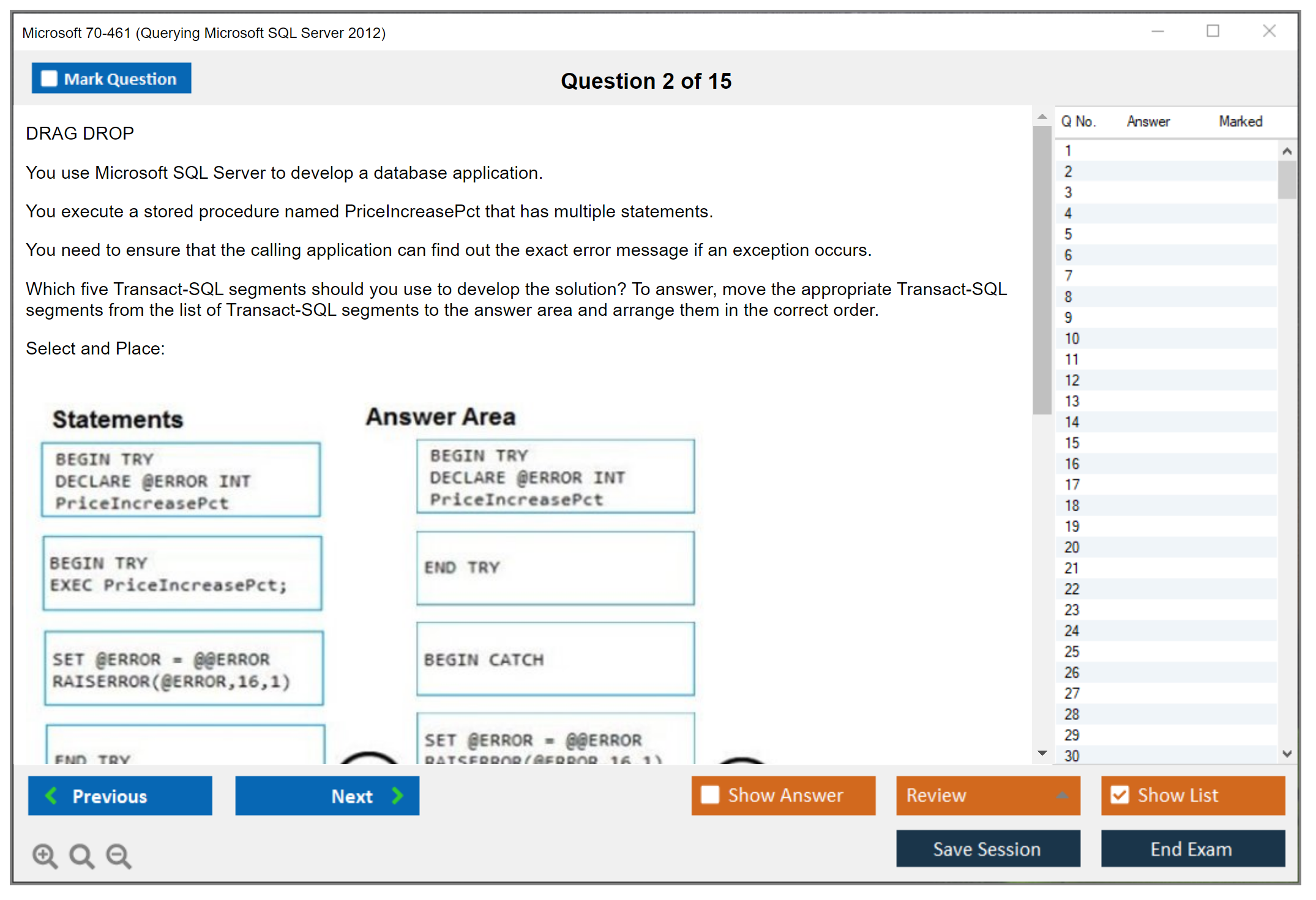 Note: Microsoft 70-461 (Querying Microsoft SQL Server 2012) will not receive any new updates.
