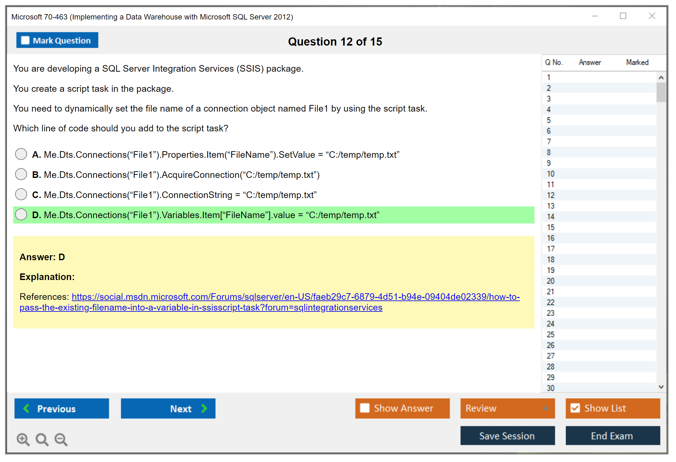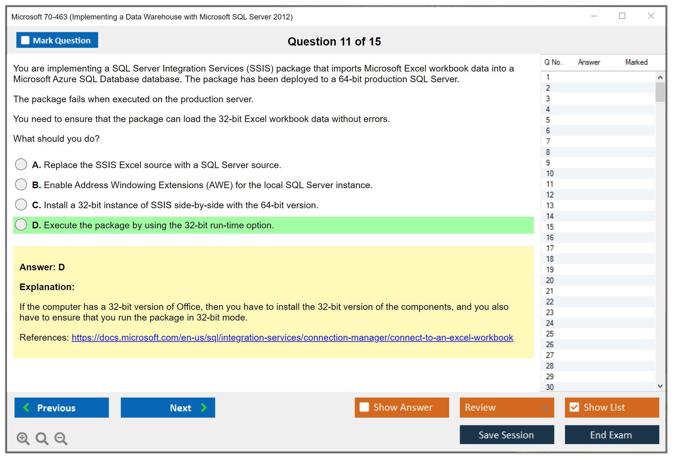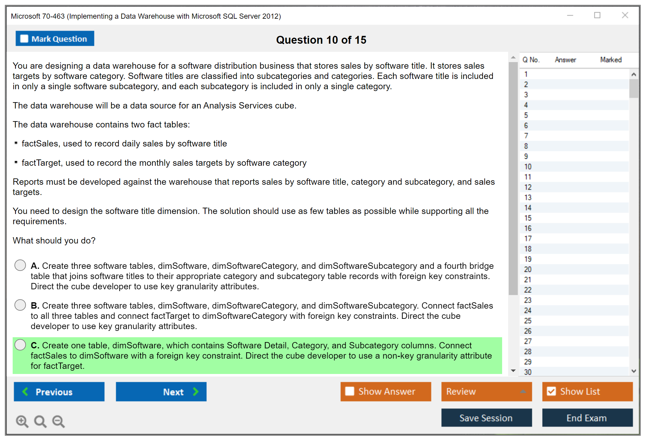 Note: Microsoft 70-463 (Implementing a Data Warehouse with Microsoft SQL Server 2012) will not receive any new updates.
