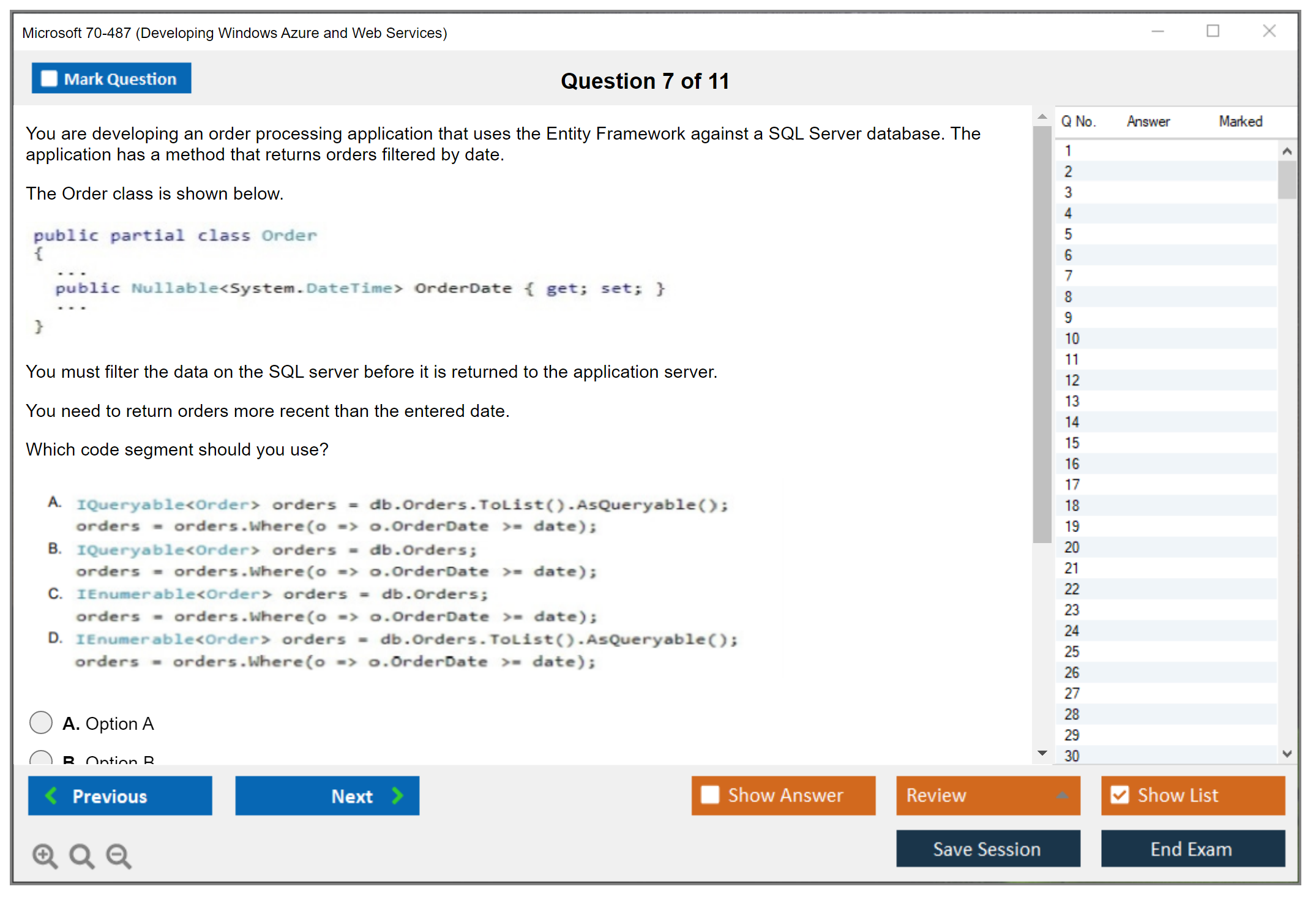 Note: Microsoft 70-487 (Developing Windows Azure and Web Services) will not receive any new updates.