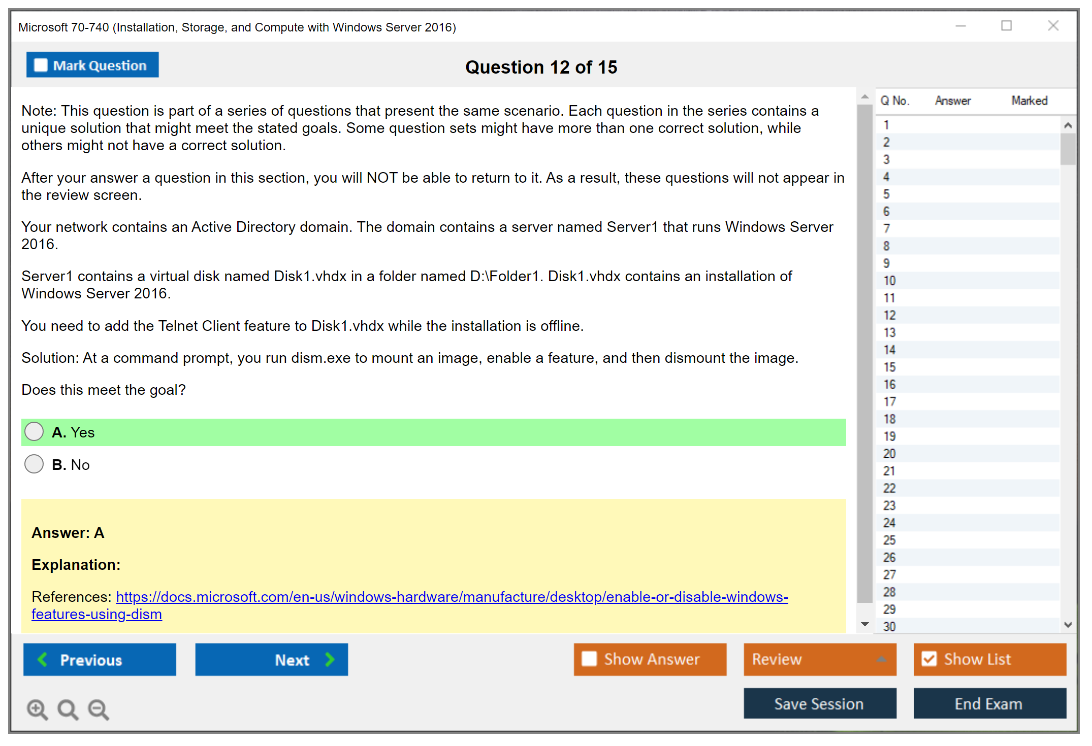 Note: Microsoft 70-740 (Installation, Storage, and Compute with Windows Server 2016) will not receive any new updates.