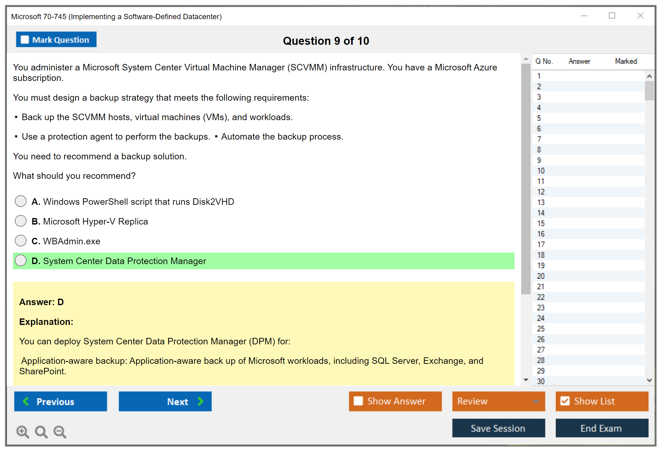 Note: Microsoft 70-745 (Implementing a Software-Defined Datacenter) will not receive any new updates.