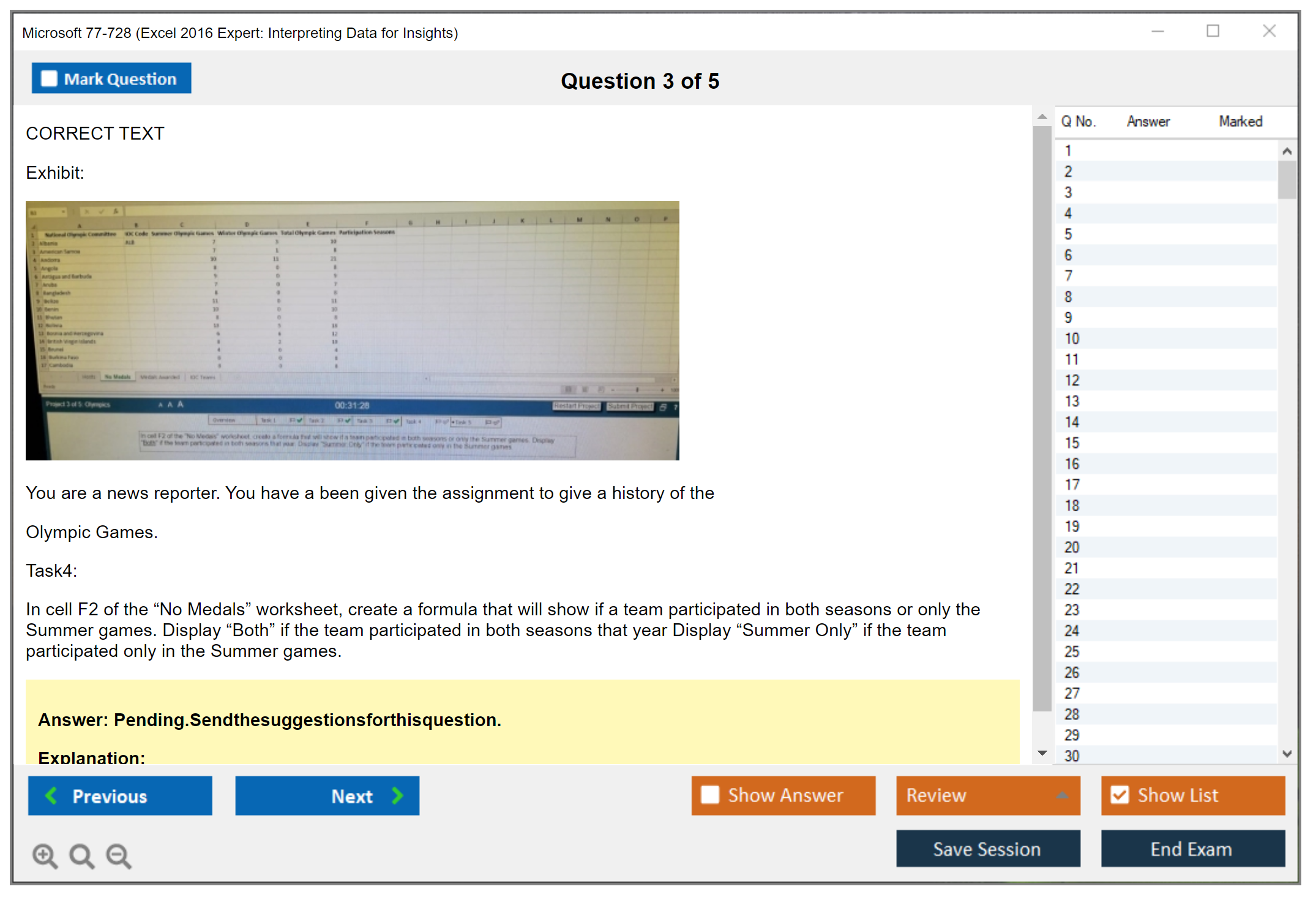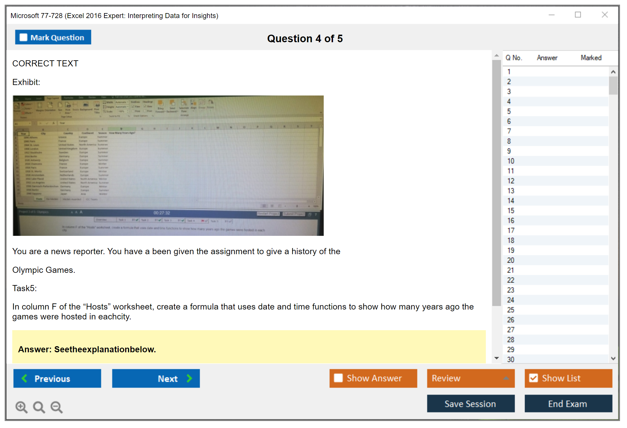The Microsoft 77-728 (Excel 2016 Expert: Interpreting Data for Insights) exam is designed to assess the skills of individuals in managing and analyzing data using Microsoft Excel 2016 at an expert level. The exam tests the ability to create, manage, and distribute professional spreadsheets for a variety of specialized purposes and situations.