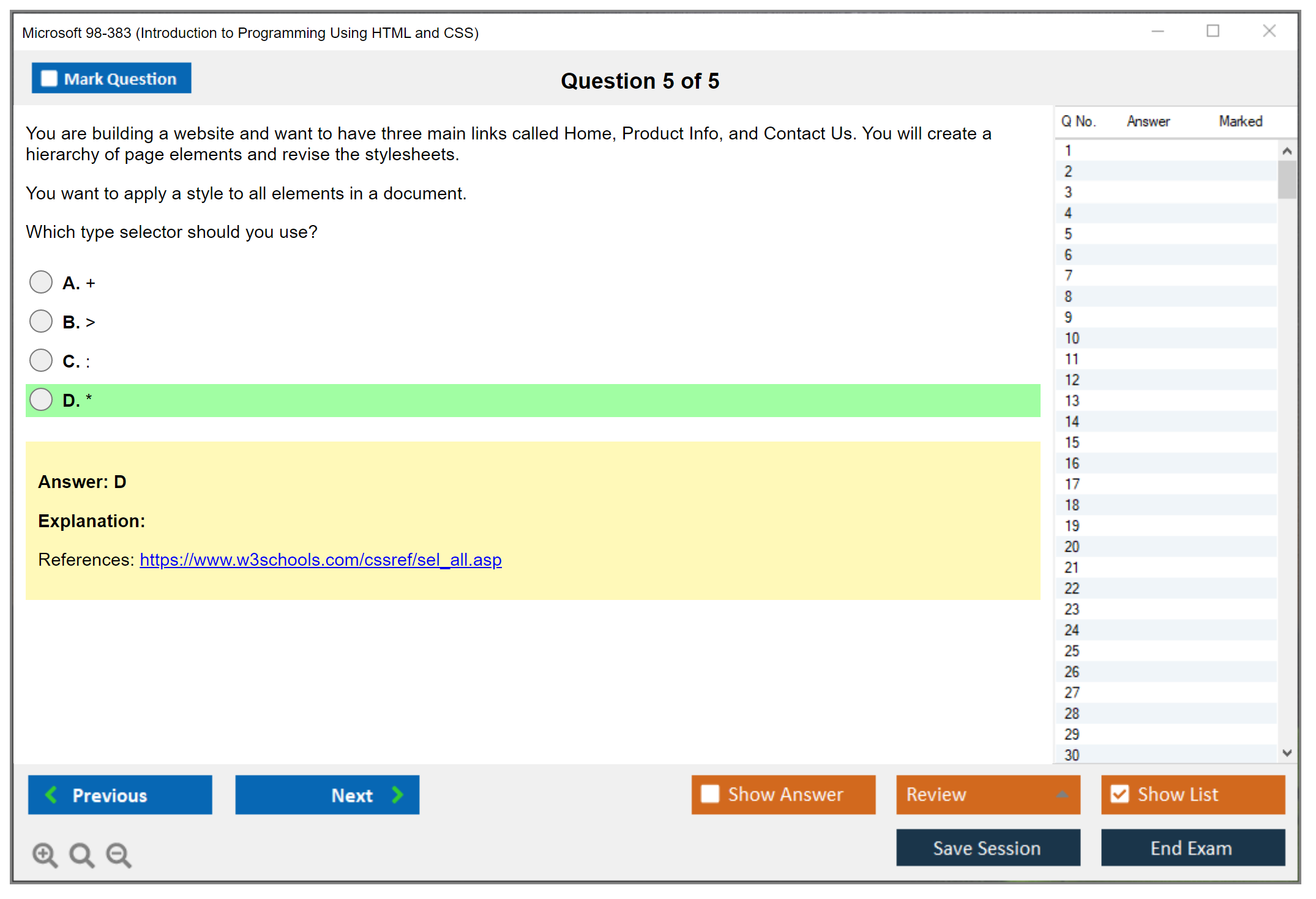 The Microsoft 98-383 exam is an entry-level certification that validates a candidate's ability to program using HTML and CSS. It is ideal for individuals looking to demonstrate their foundational skills in web development.