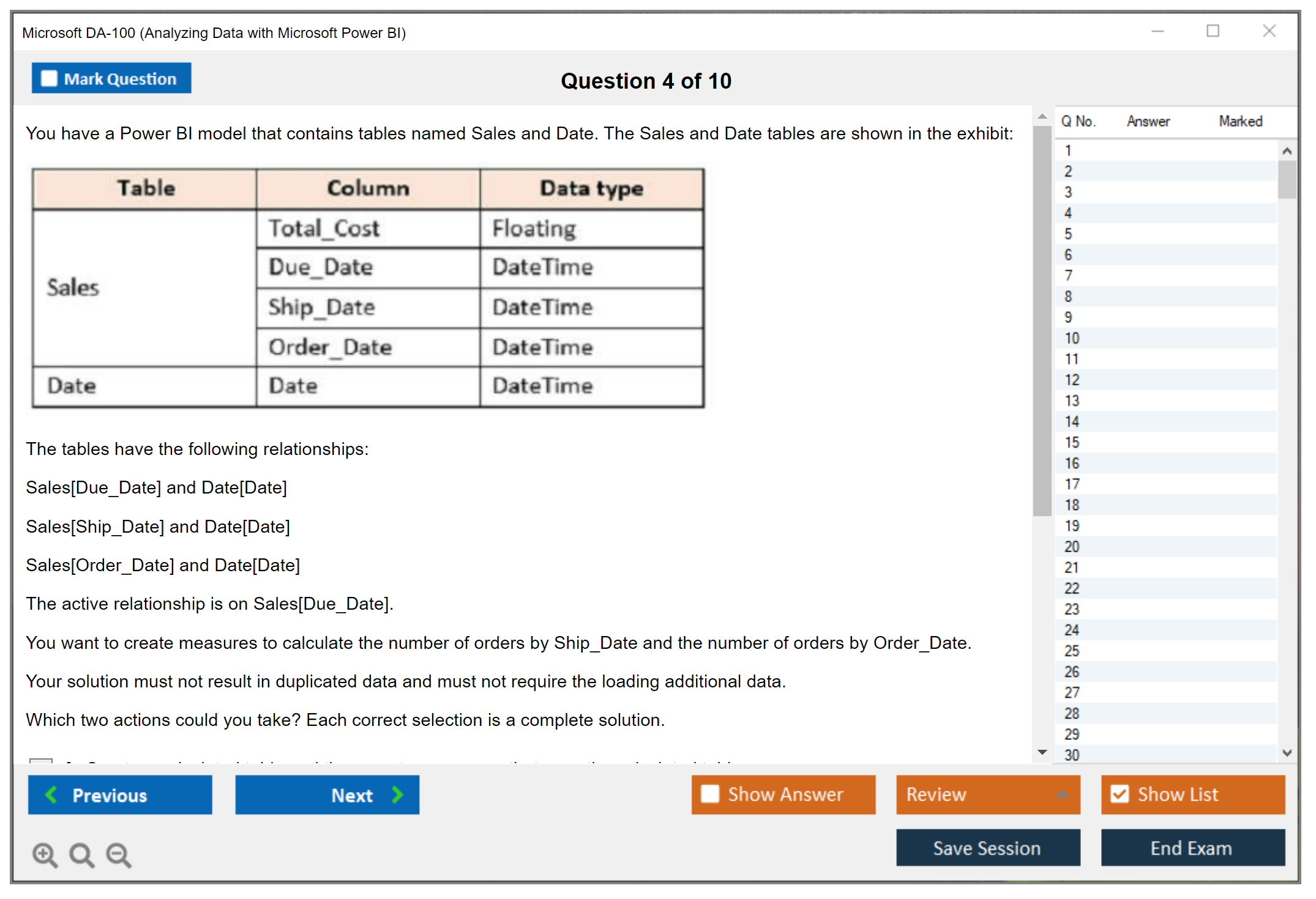 The Microsoft DA-100 Exam, also known as Analyzing Data with Microsoft Power BI, is intended for data analysts who use Power BI to create reports and dashboards. The exam tests your ability to prepare, model, visualize, analyze data, and deploy and maintain deliverables.