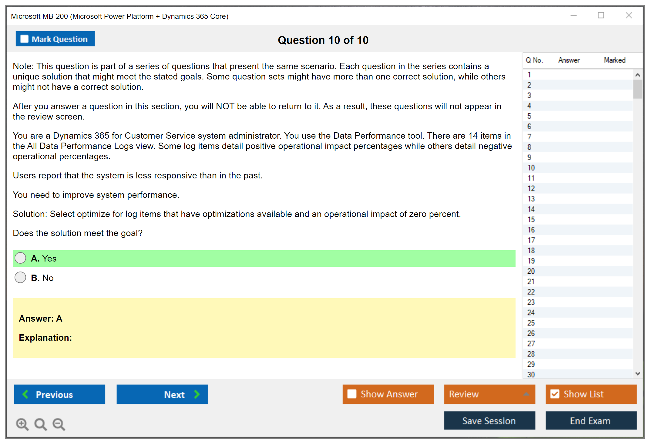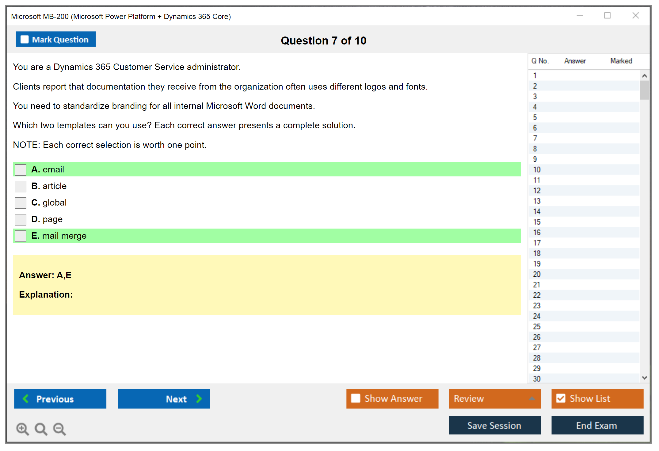 DumpsBoss mb-200 microsoft exam prep materials were top-notch. The questions were in-depth and challenged my technical knowledge. I particularly appreciated the explanations provided, which solidified my understanding of the concepts. DumpsBoss definitely helped me ace the exam and advance my Microsoft career.