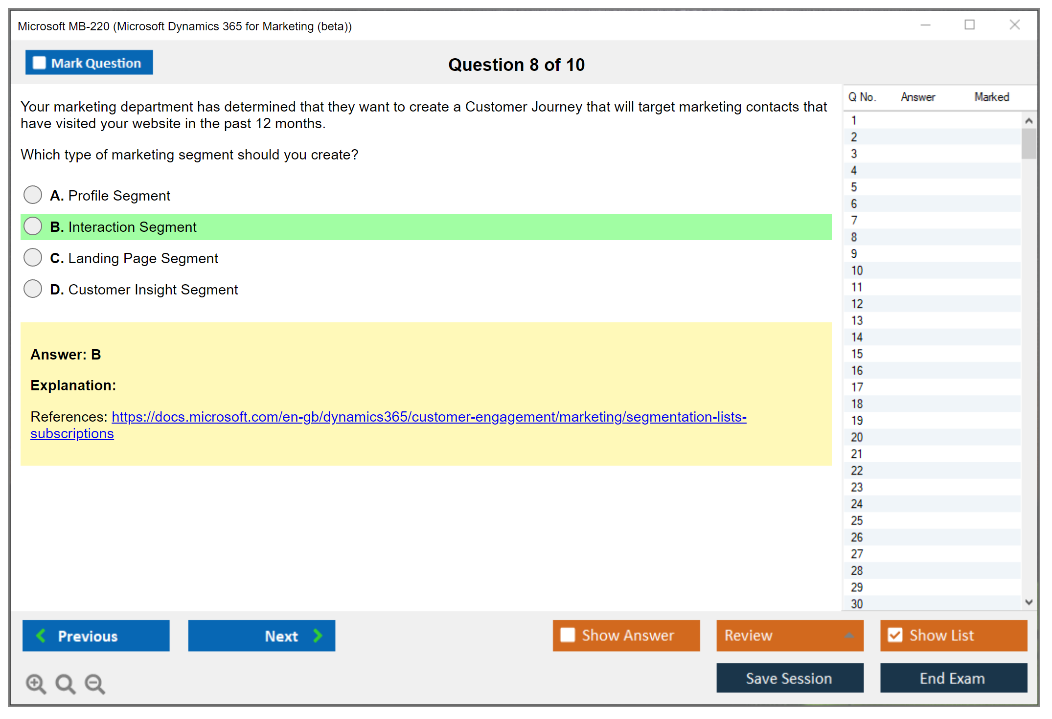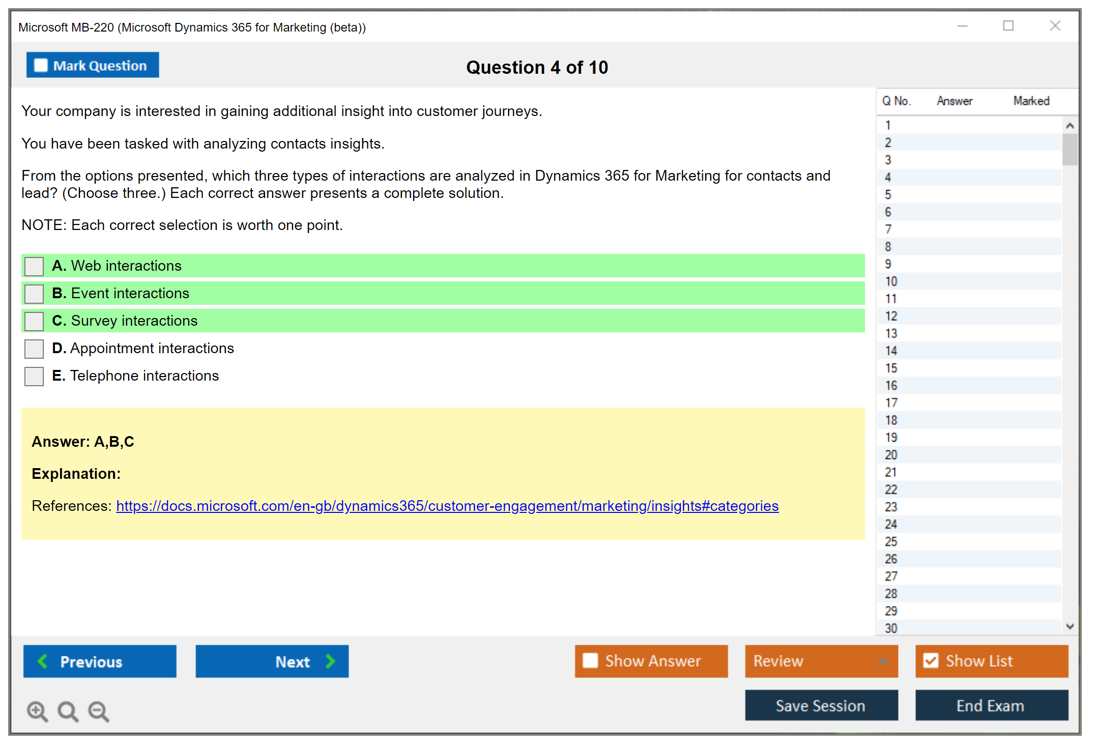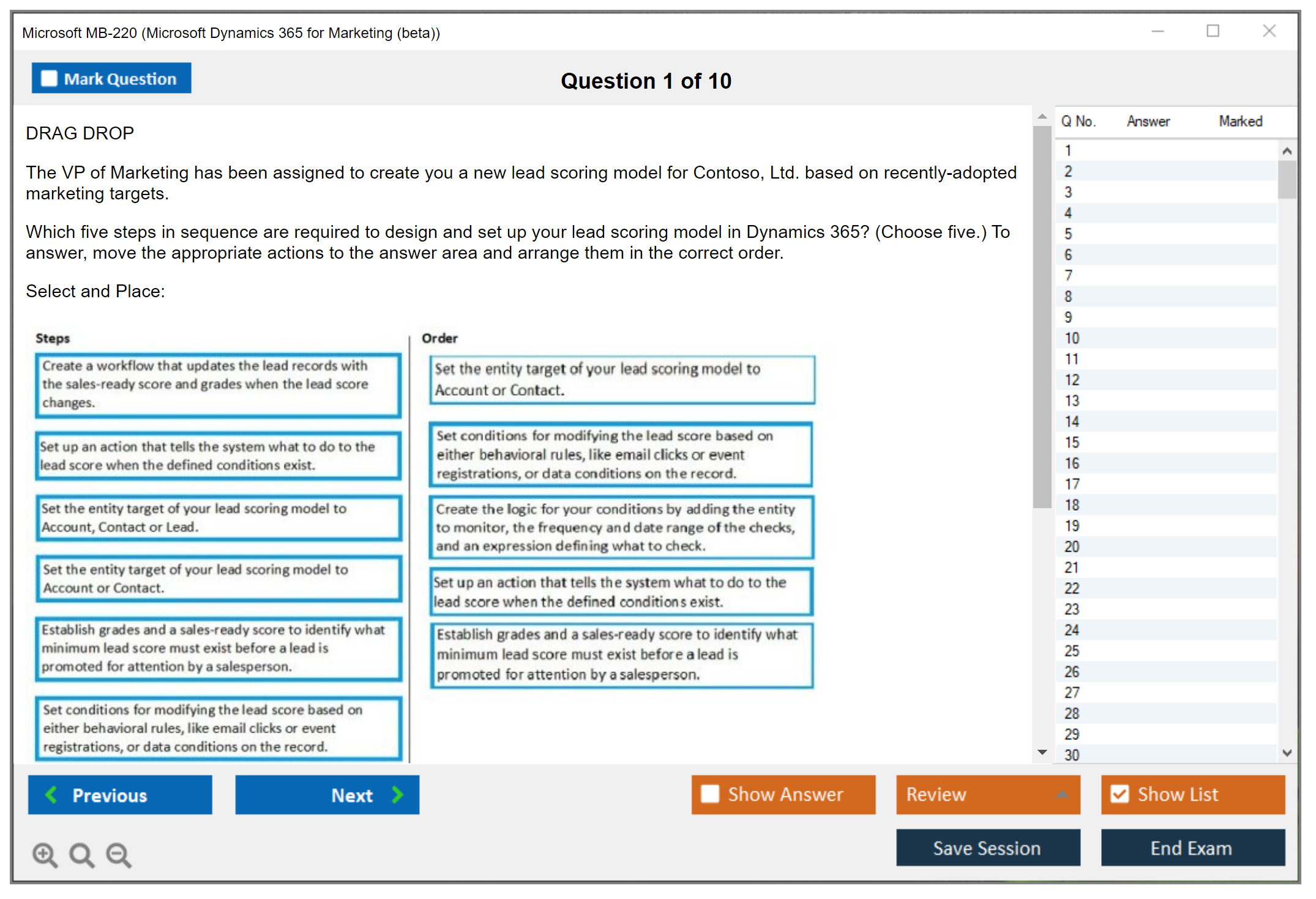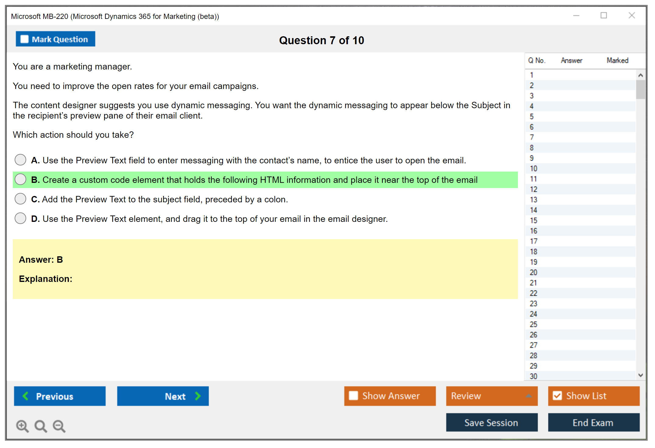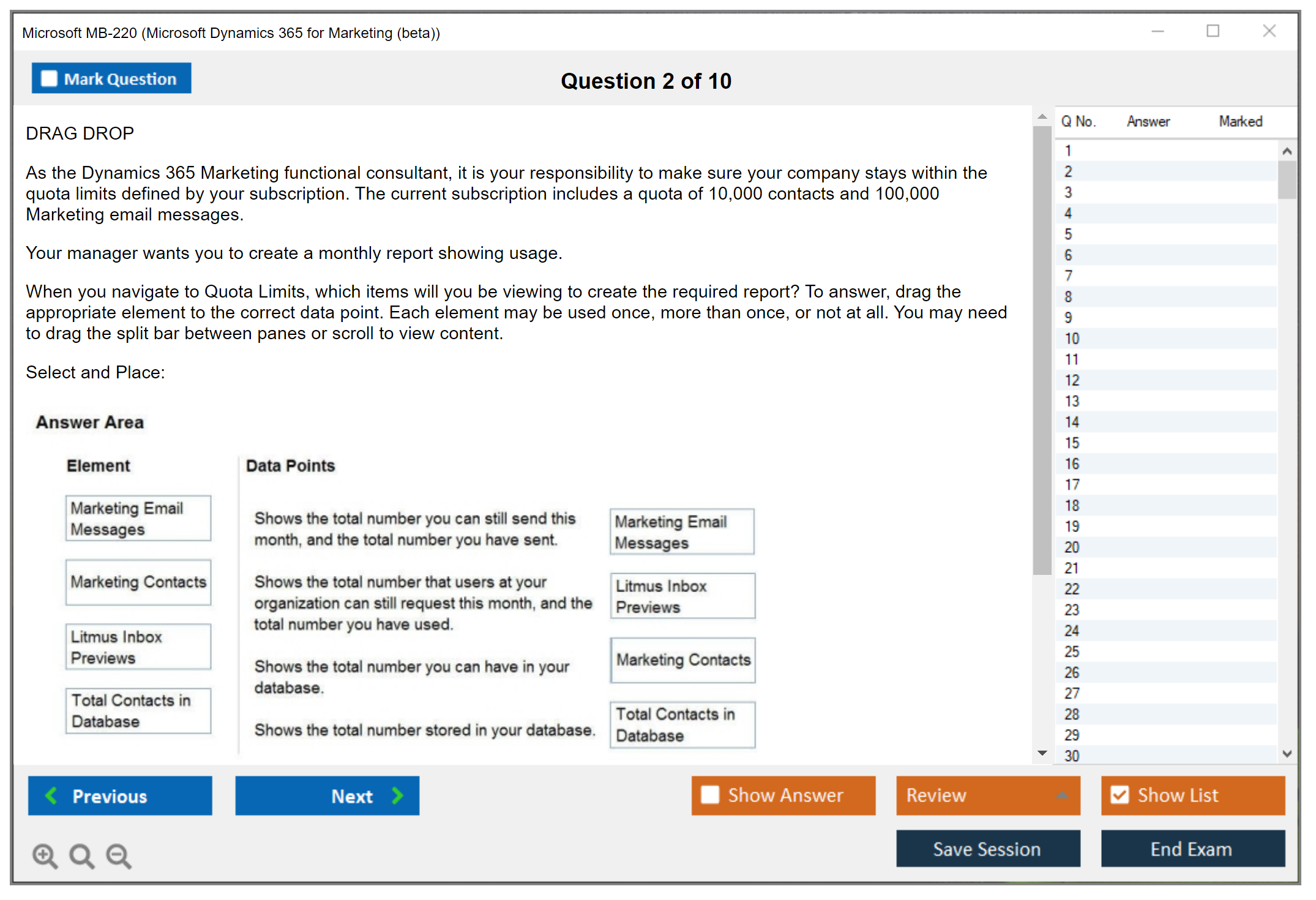 The Microsoft MB-220 exam, also known as the Microsoft Dynamics 365 Marketing Functional Consultant exam, is designed for professionals who implement solutions that attract and convert leads, build brand awareness, standardize omnichannel messaging, and deliver personalized experiences. The exam measures the candidate's ability to configure Dynamics 365 Marketing and manage core marketing operations.