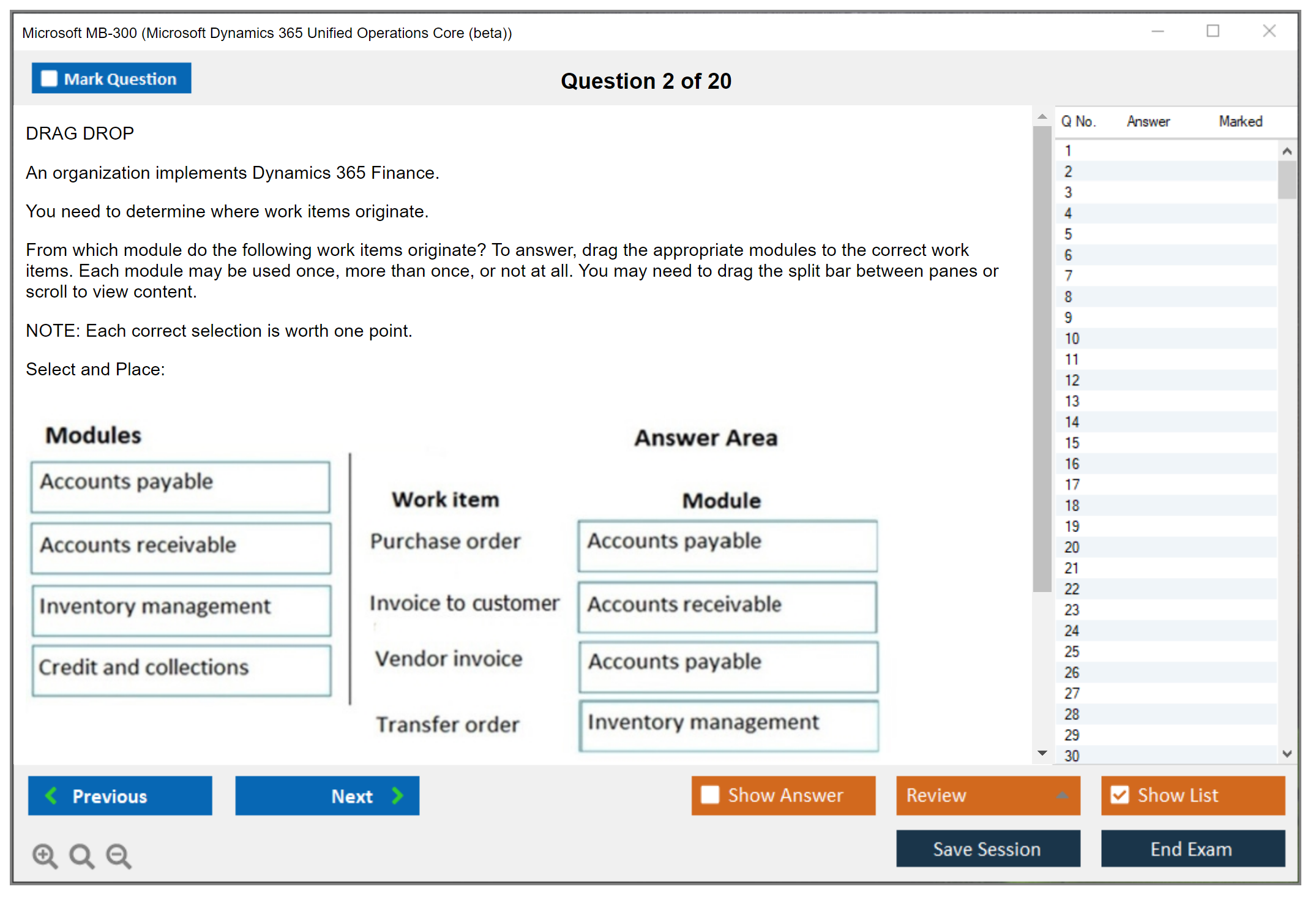The Microsoft MB-300 exam is a certification exam that assesses a candidate's proficiency in the core functionalities of Microsoft Dynamics 365 Finance and Operations. It is aimed at professionals who work with enterprise resource planning (ERP) systems and are responsible for implementing and managing Dynamics 365 solutions.