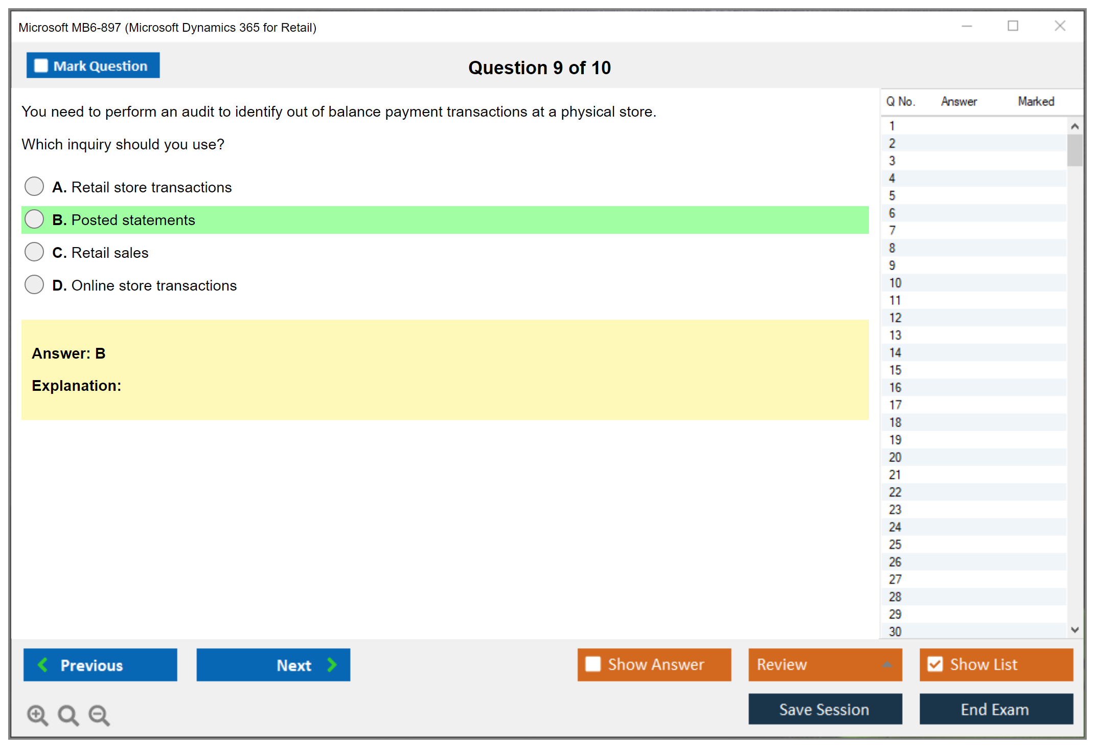 The Microsoft MB6-897 exam is a certification test that evaluates the skills and knowledge required to implement and manage retail operations using Microsoft Dynamics 365 for Retail. It covers various aspects such as retail channels, point of sale (POS), retail operations, and more.