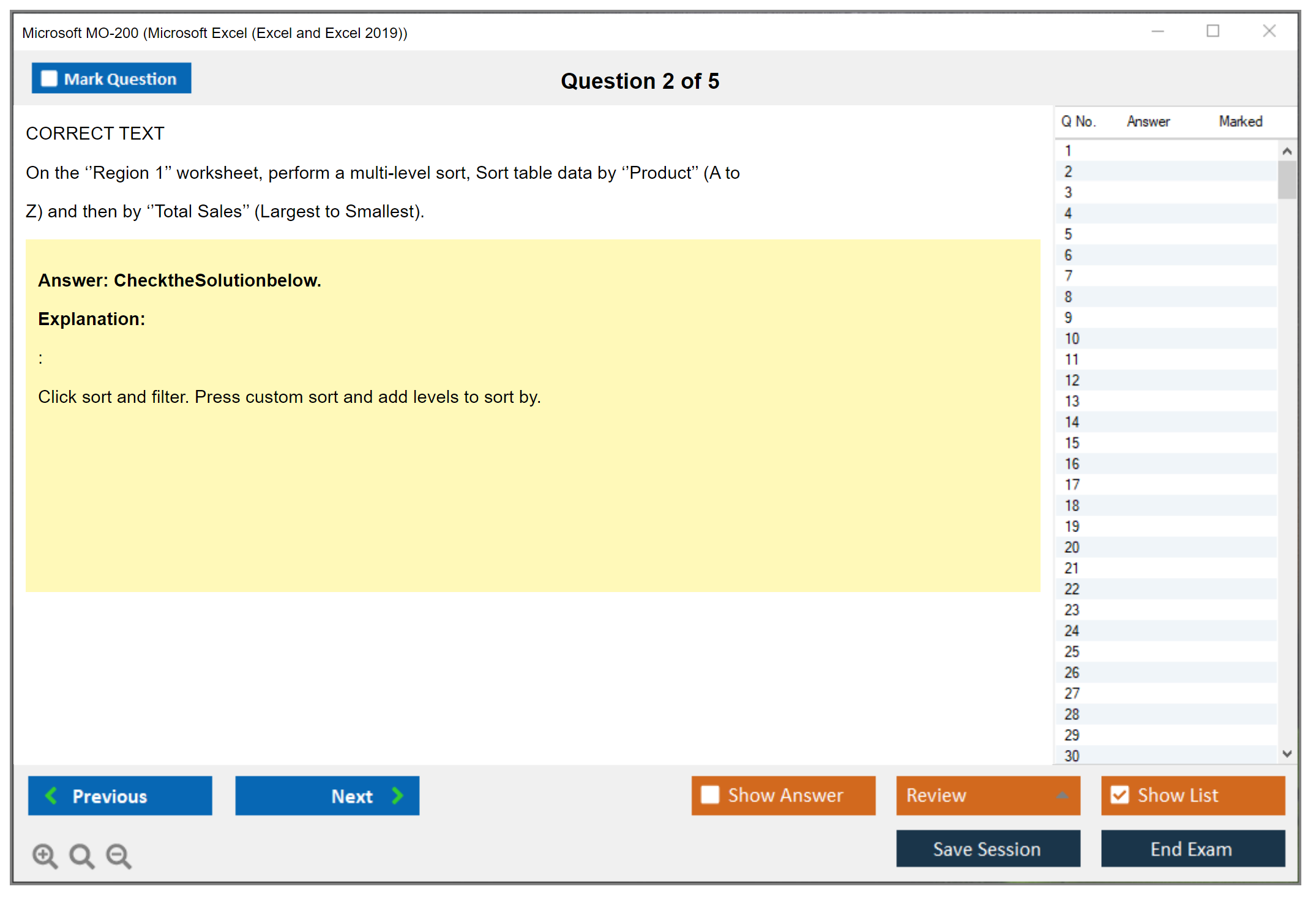 MO-200 (Microsoft Excel (Excel and Excel 2019)) PDF, Test Engine and Training Course