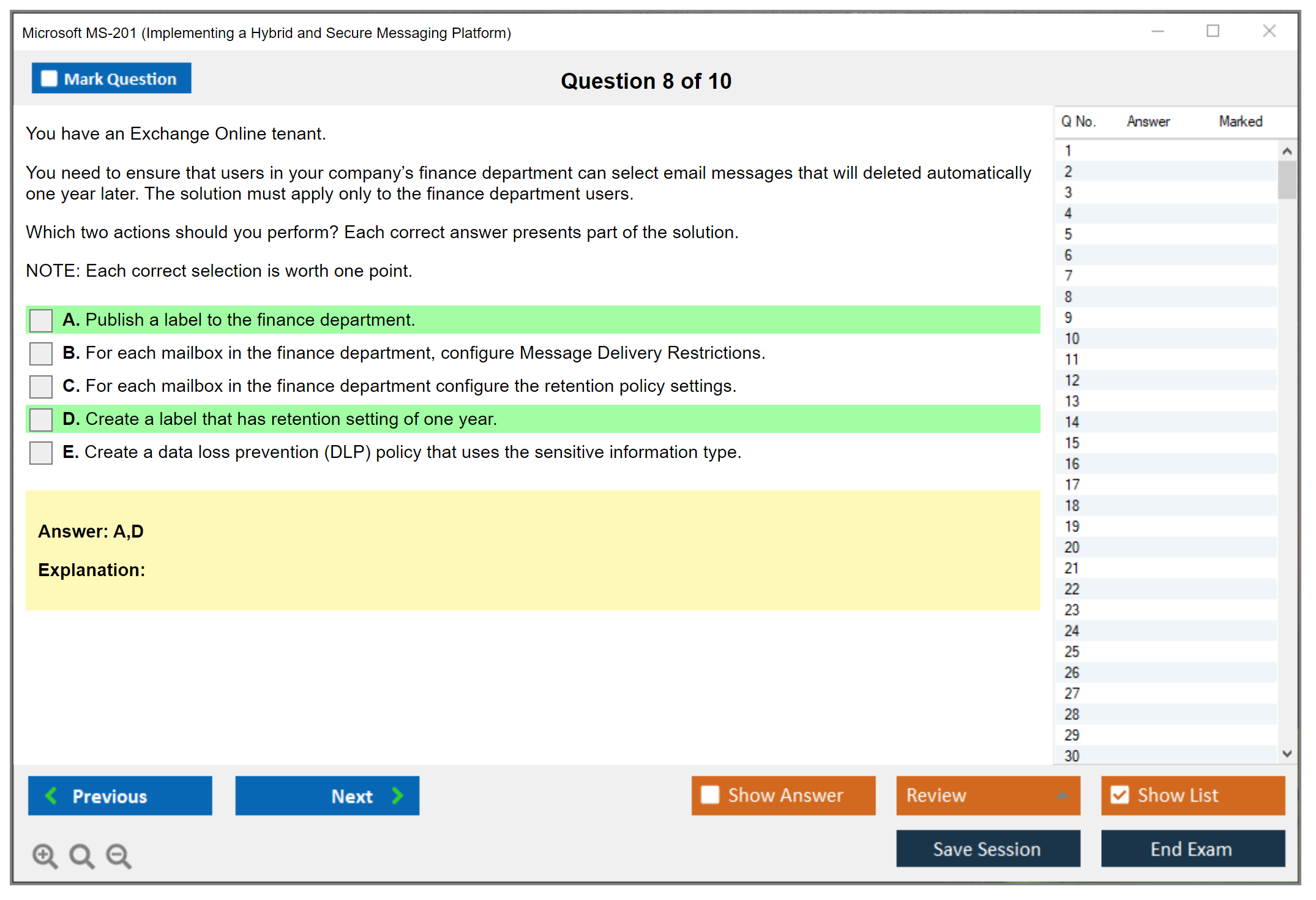 Note: Microsoft MS-201 (Implementing a Hybrid and Secure Messaging Platform) will not receive any new updates.
