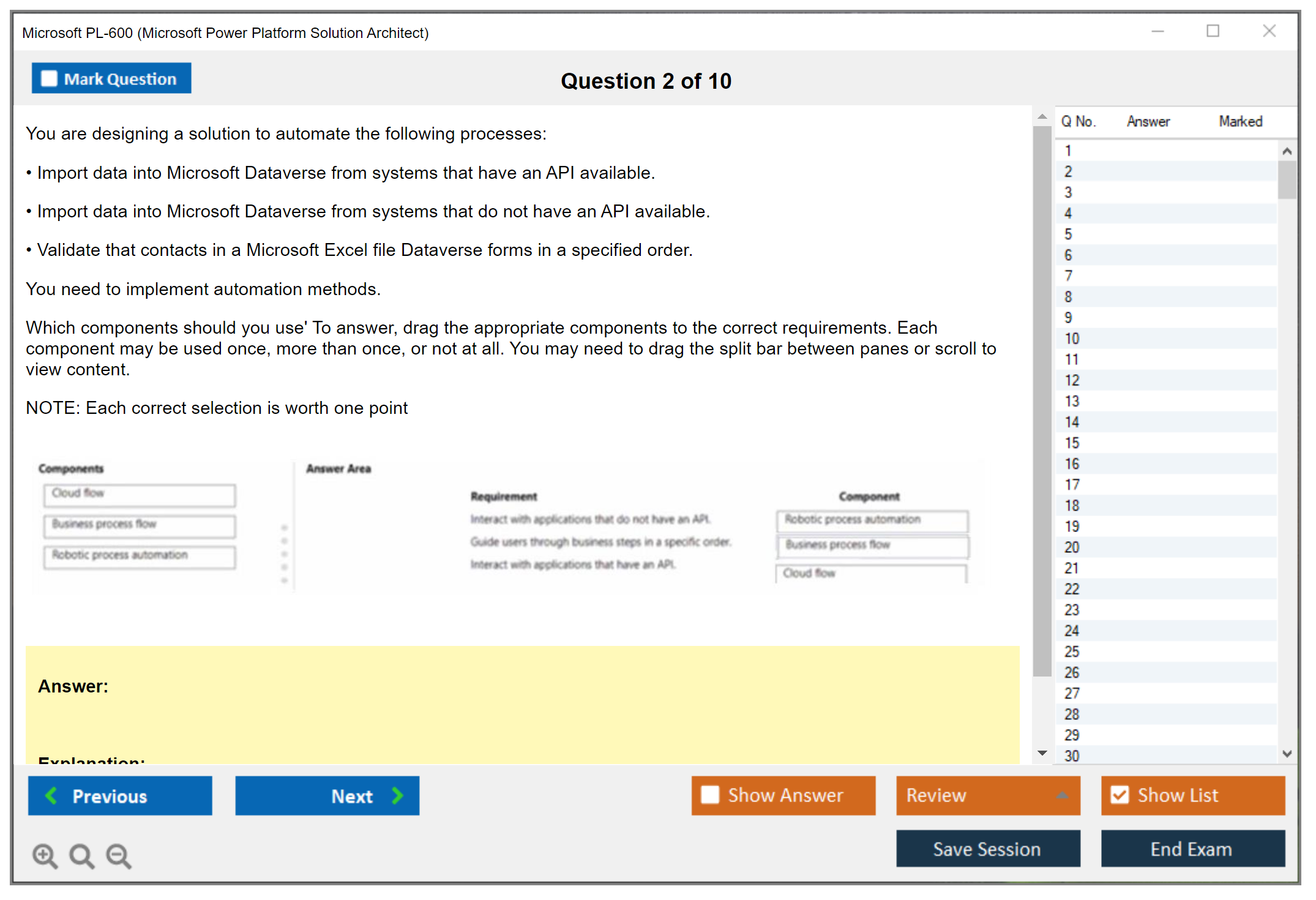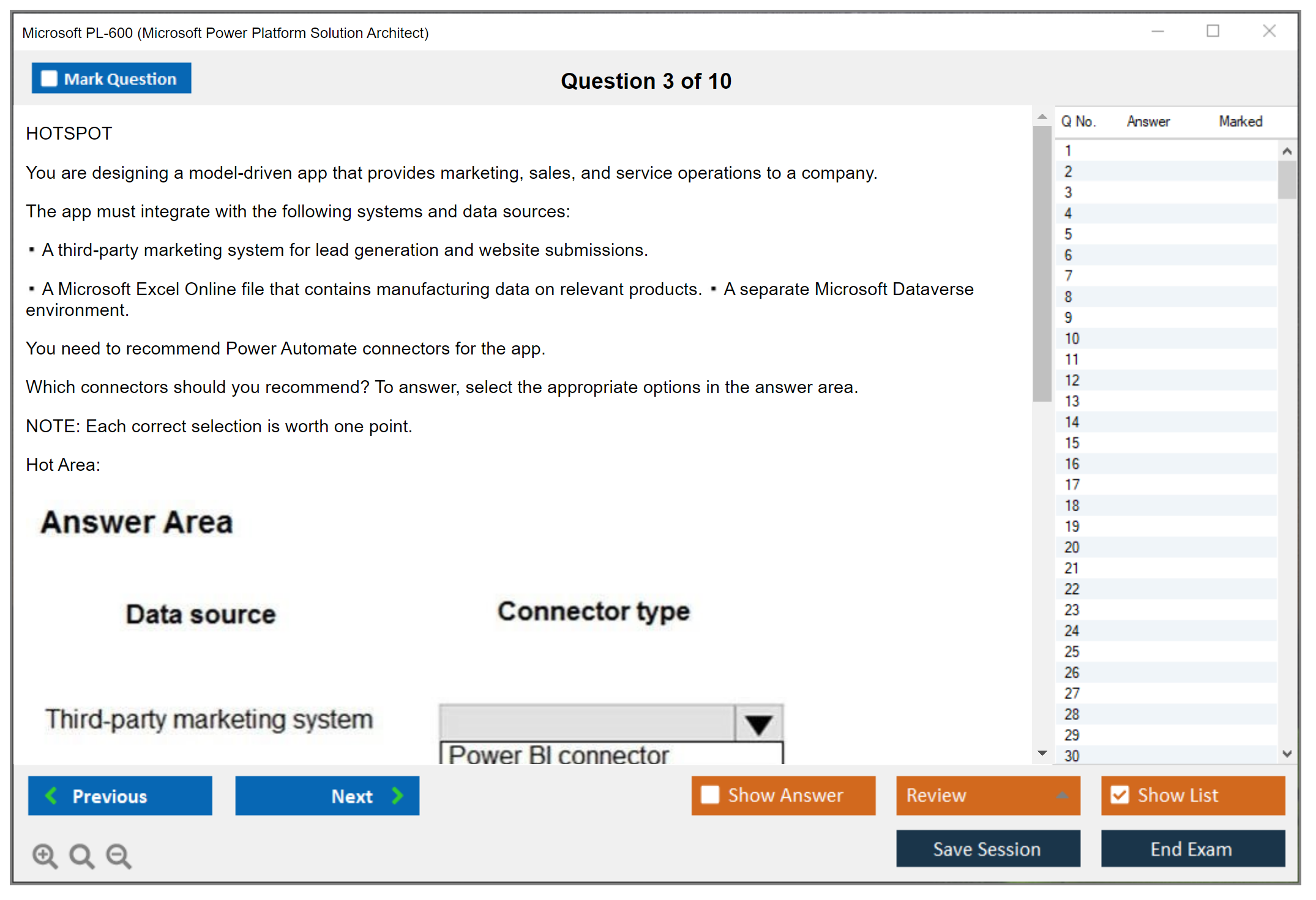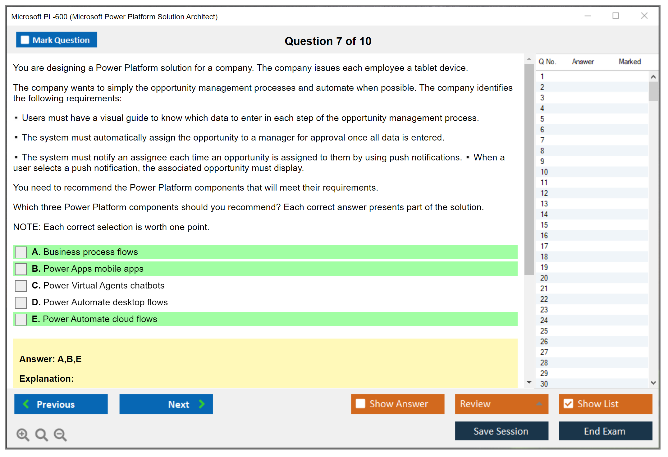 The Microsoft PL-600 (Microsoft Power Platform Solution Architect) Exam is designed for professionals who want to validate their skills and knowledge in designing and implementing solutions using Microsoft Power Platform. This exam measures the ability to lead successful implementations and focus on how solutions address the broader business and technical needs of organizations.