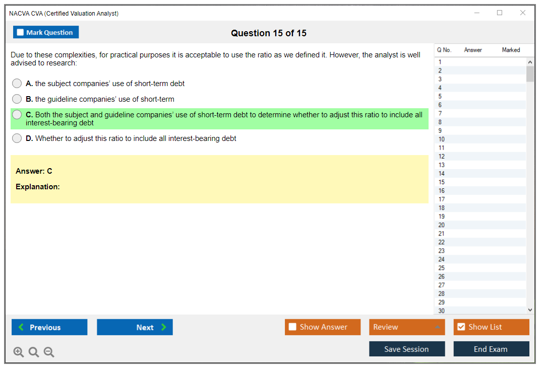 The NACVA CVA (Certified Valuation Analyst) Exam is a professional certification exam designed to assess the knowledge and skills of valuation professionals. It is administered by the National Association of Certified Valuators and Analysts (NACVA).