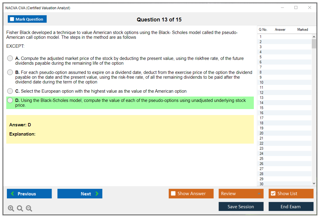 Big thanks to DumpsBoss for helping me ace the NACVA CVA Exam! The study resources are comprehensive, providing a solid foundation for success.