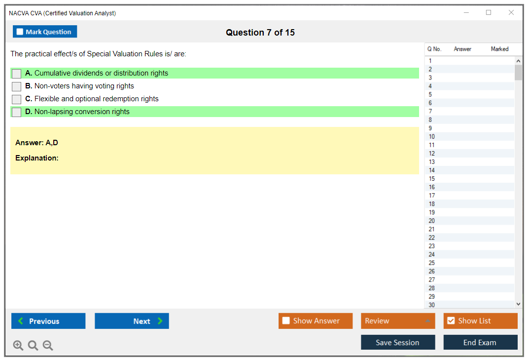 Thanks to DumpsBoss, I passed the NACVA CVA Exam on my first attempt. The practice questions were extremely helpful in gauging my readiness.