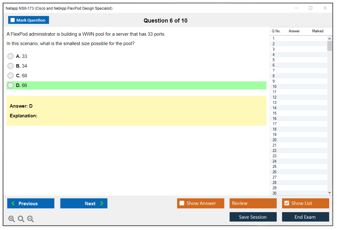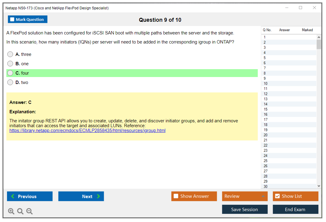 The NetApp NS0-173 exam is a certification test for IT professionals who want to demonstrate their expertise in designing FlexPod solutions, which integrate Cisco and NetApp technologies.