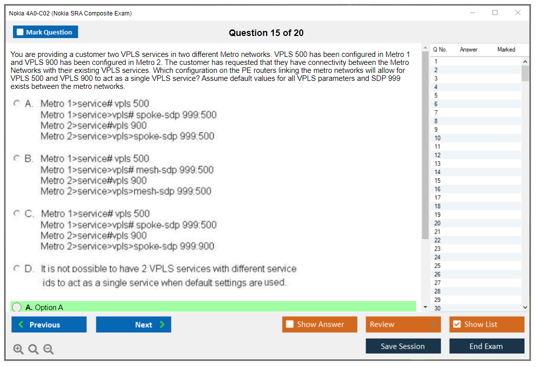 Sample questions for the Nokia 4A0-C02 Exam can be found on the official Nokia certification website or through authorized training providers.