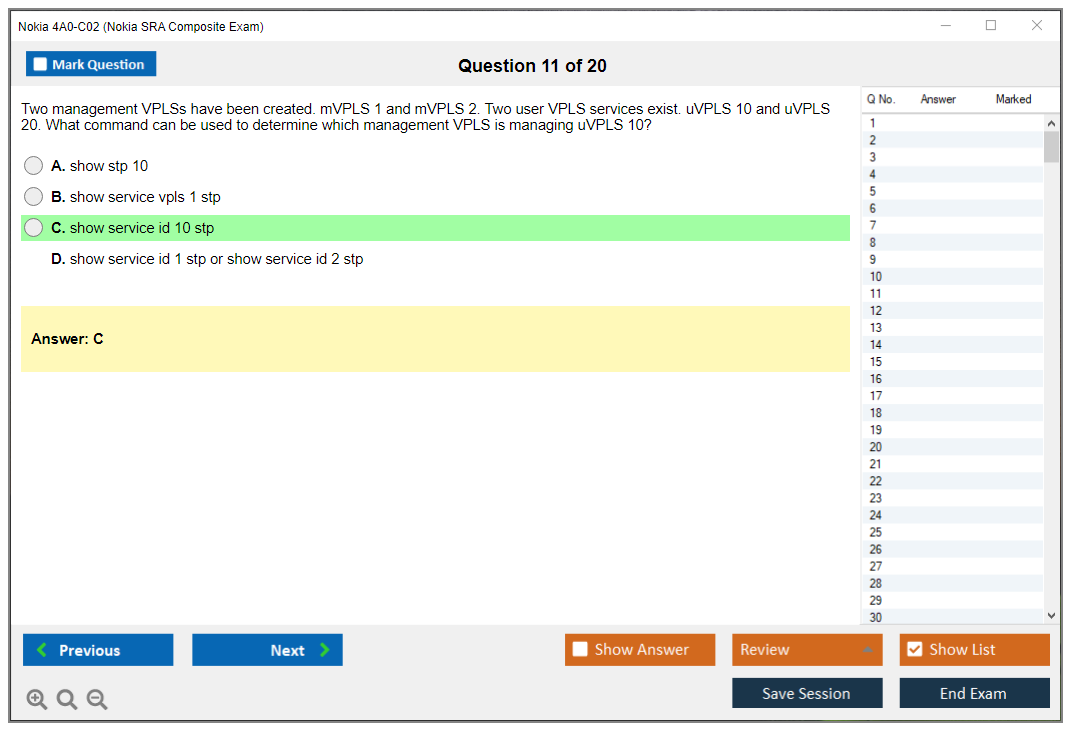 The Nokia 4A0-C02 Exam is a part of the Nokia Service Routing Certification (SRC) program, which is aimed at professionals who want to demonstrate their expertise in Nokia's IP and MPLS networks.