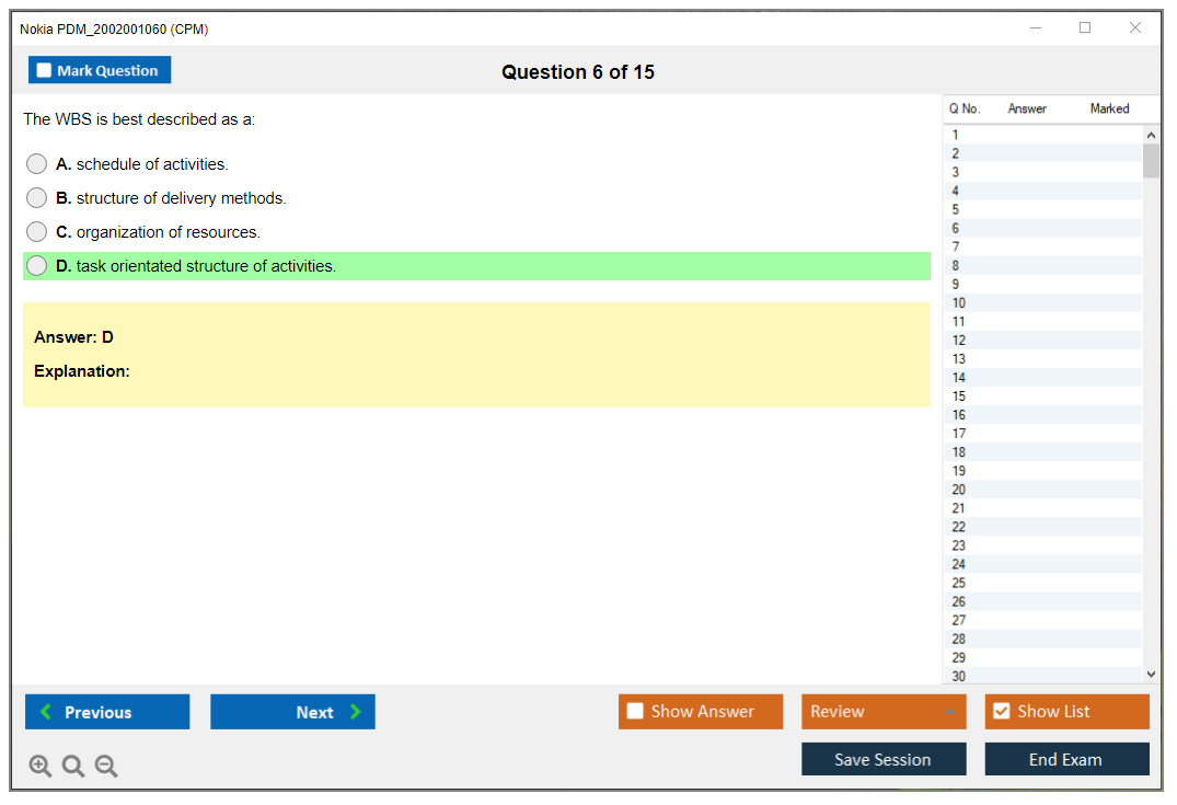 The question format of the Nokia PDM_2002001060 Exam includes multiple-choice questions, drag-and-drop, and simulation-based questions.