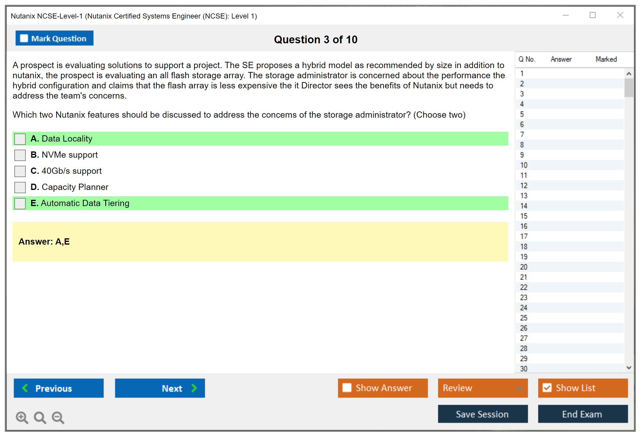 The Nutanix Certified Systems Engineer (NCSE): Level 1 exam is a certification exam that validates an individual's ability to understand and work with Nutanix technologies.