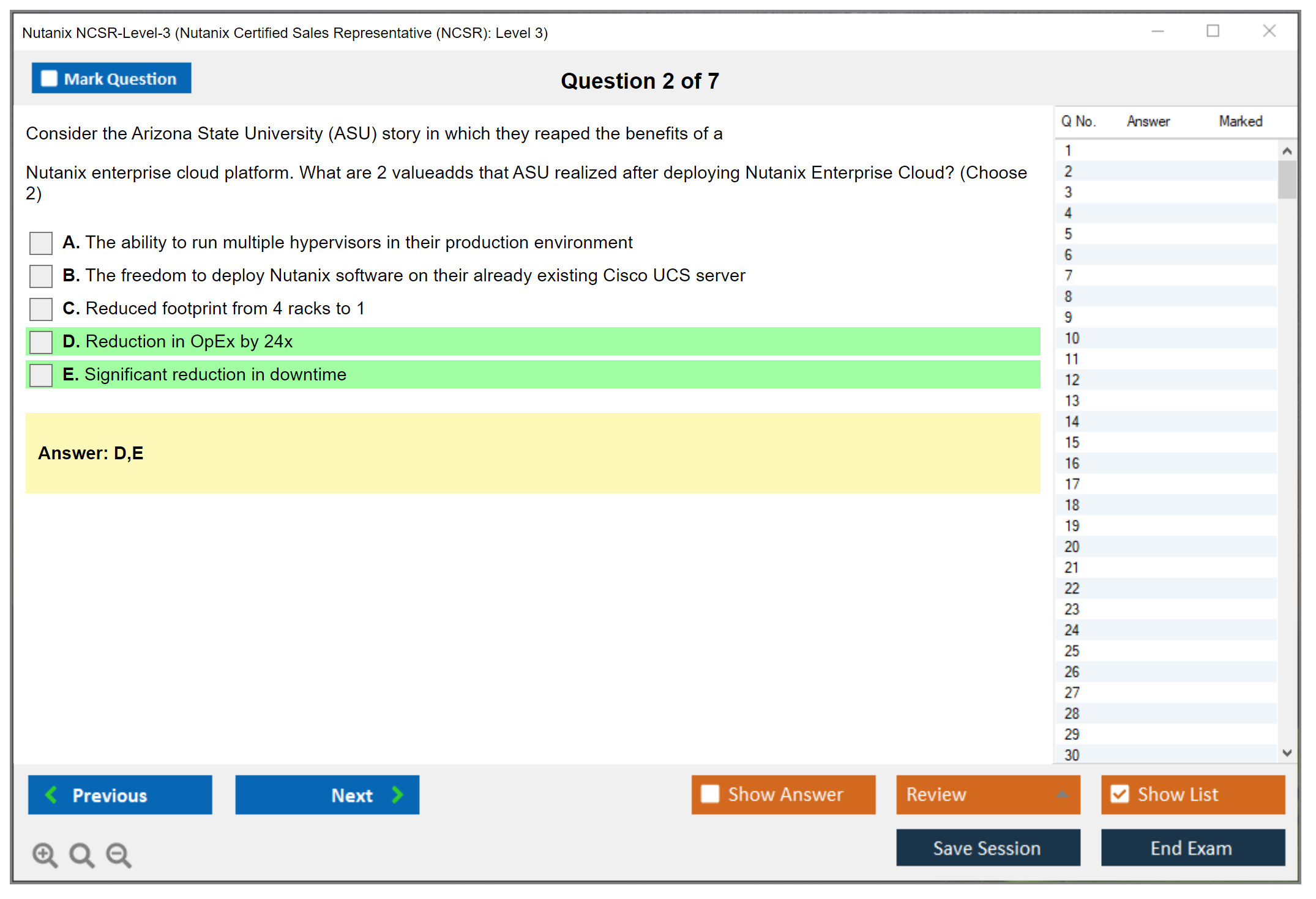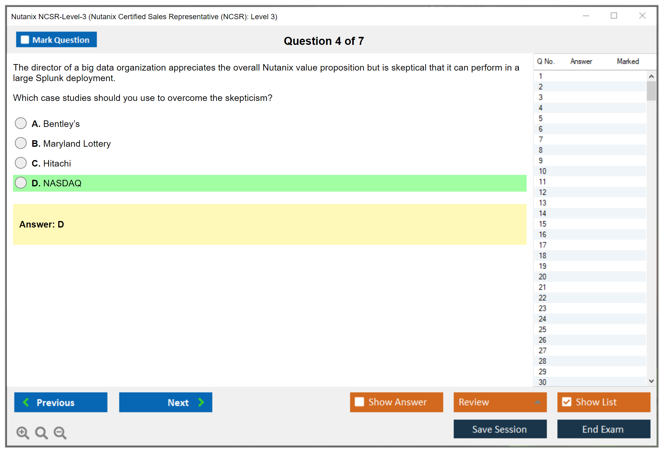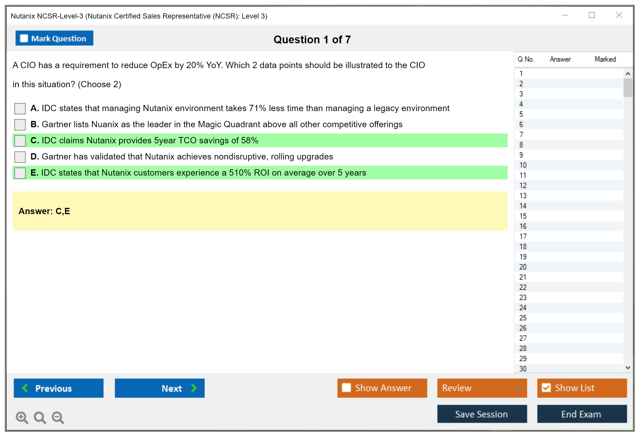 The Nutanix NCSR-Level-3 (Nutanix Certified Sales Representative: Level 3) exam is designed for sales professionals who have advanced knowledge and skills in selling Nutanix solutions. It validates their ability to understand customer needs, articulate the value proposition of Nutanix products, and effectively position them against competitors.