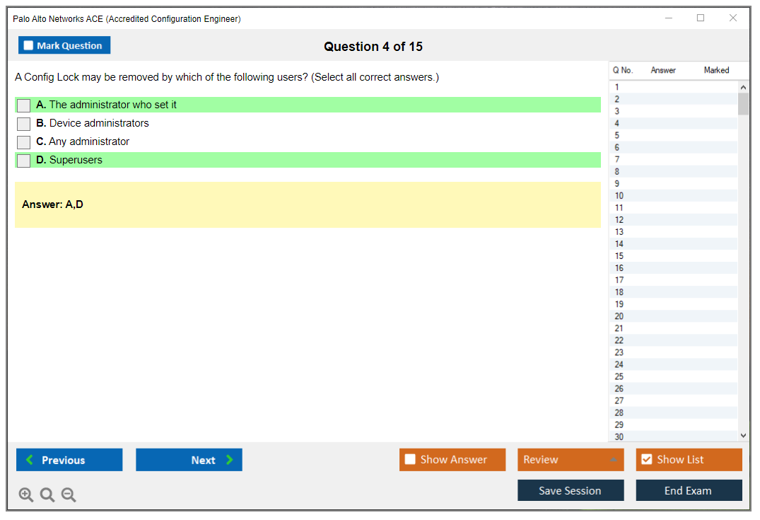DumpsBoss’s Palo Alto Networks ACE practice test is fantastic! The well-structured questions and detailed explanations made my exam prep efficient and effective. Highly recommend for ace-ing your certification!