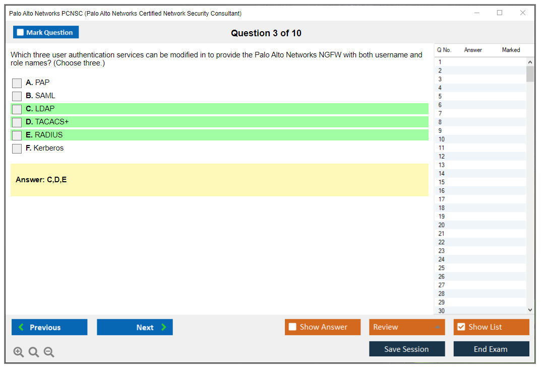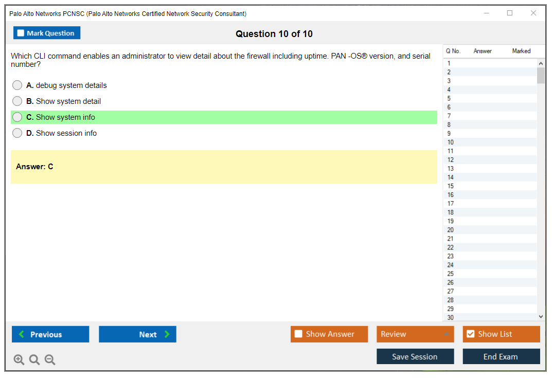 The number of questions in the Palo Alto Networks PCNSC exam can vary, but typically it consists of around 60-70 multiple-choice and scenario-based questions.