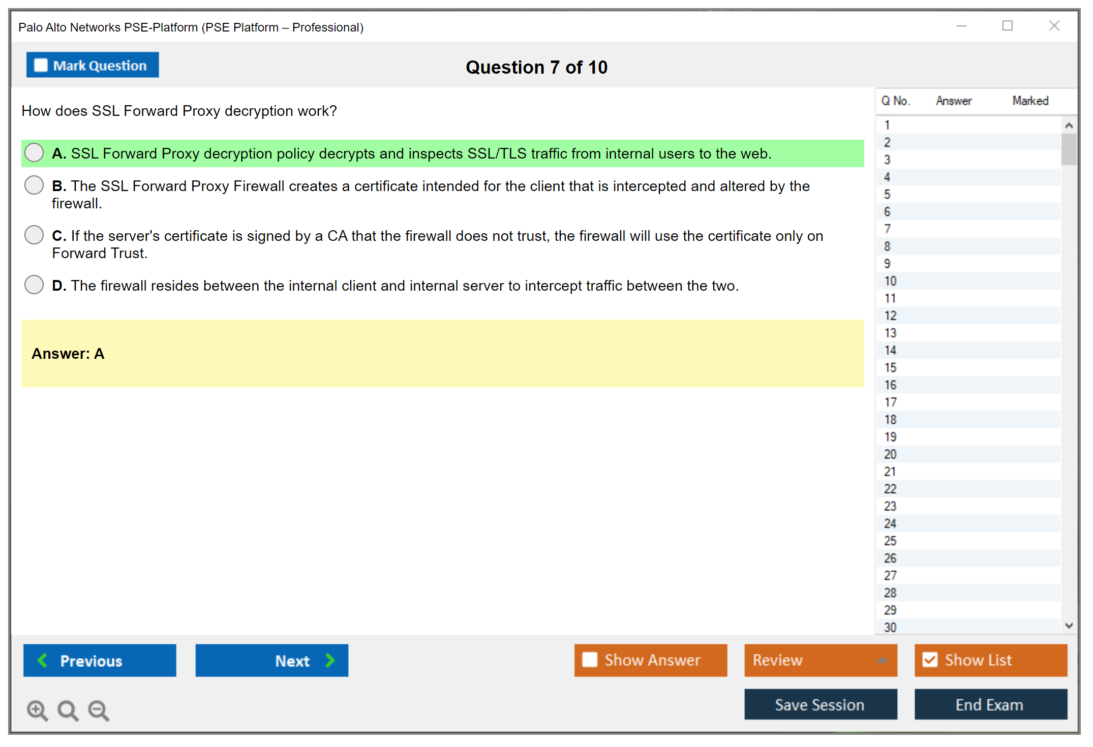 The Palo Alto Networks PSE-Platform (PSE Platform – Professional) Exam is designed to validate the knowledge and skills required to design, deploy, and operate Palo Alto Networks security solutions. This certification demonstrates a professional-level understanding of the Palo Alto Networks platform, including its architecture, configuration, and optimization.