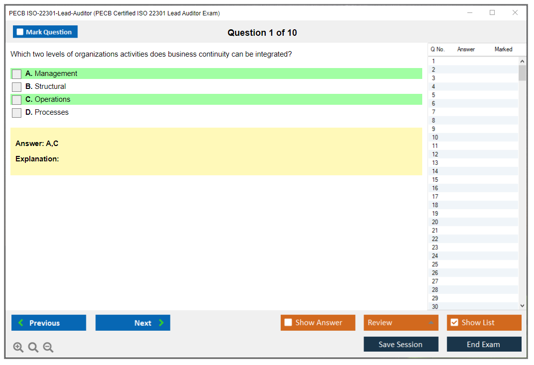 What are the Sample Questions of PECB ISO-22301-Lead-Auditor Exam?