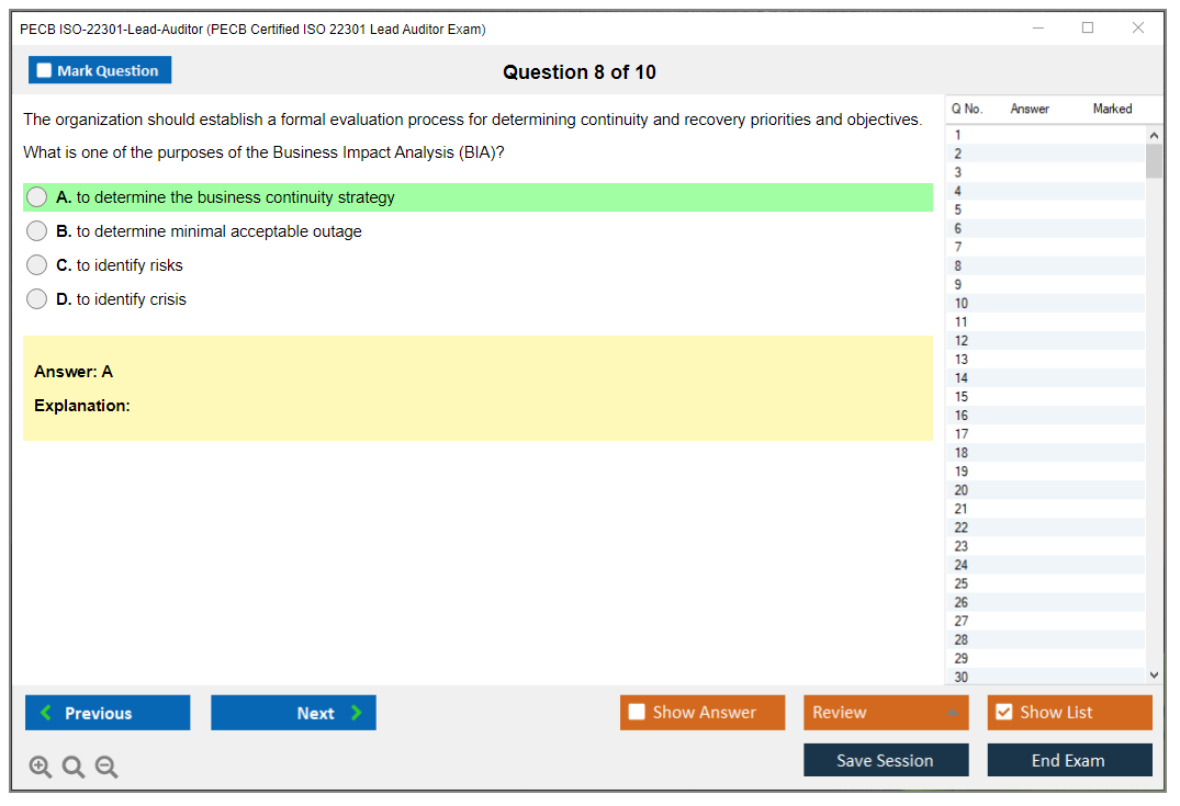 The PECB ISO 22301 Lead Auditor exam is a professional certification exam aimed at individuals seeking to demonstrate their competence in auditing and managing a Business Continuity Management System (BCMS) in accordance with ISO 22301 standards. Successful candidates will be able to conduct audits and ensure that organizations maintain effective business continuity practices.