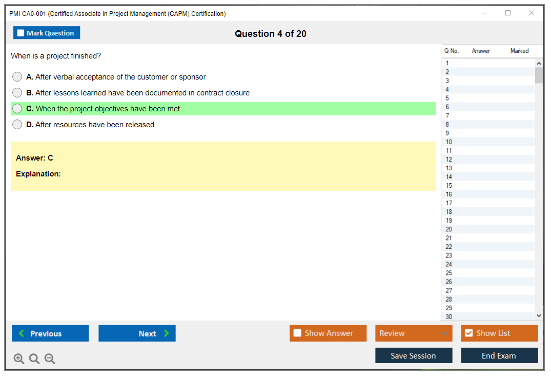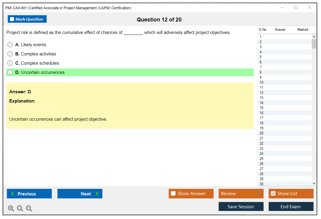 The PMI CA0-001 (Certified Associate in Project Management (CAPM) Certification) Exam is an entry-level certification for project managers. It is designed to validate the candidate's understanding of the fundamental knowledge, terminology, and processes of effective project management.