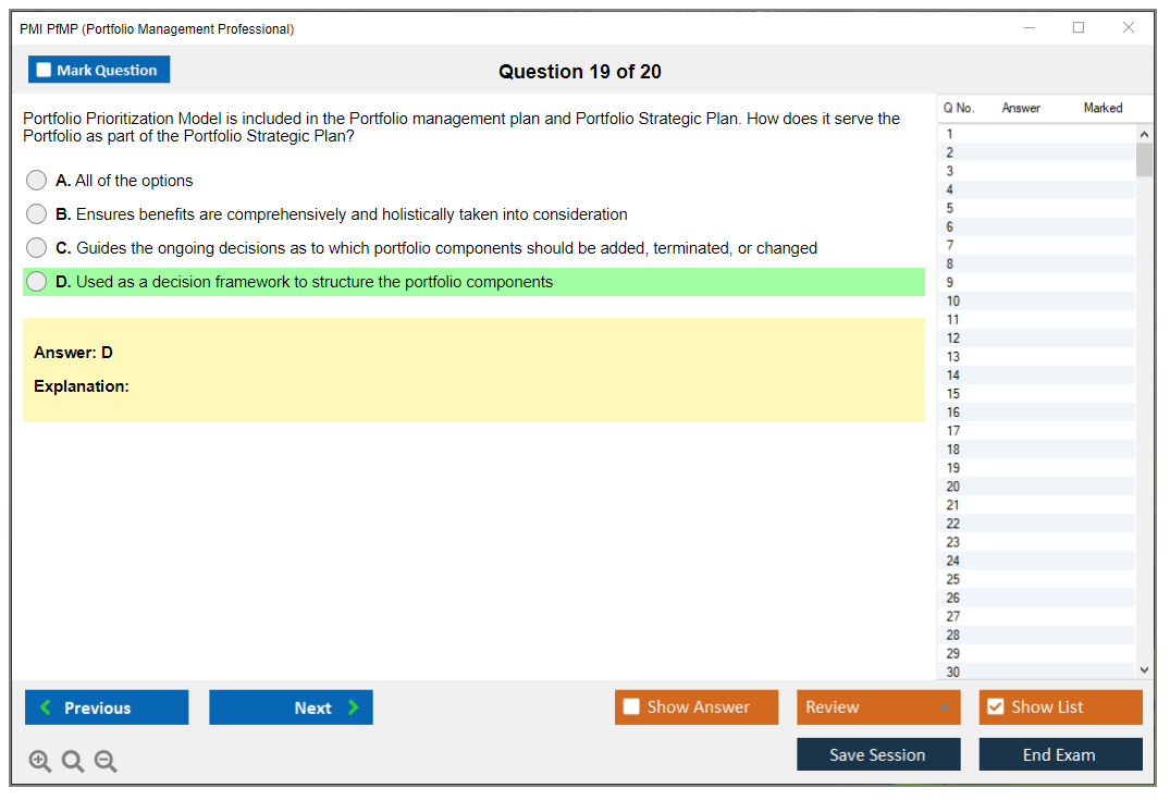 The PMI PfMP Exam prep from DumpsBoss was a game-changer for me. Their practice questions are on point, reflecting the real exam scenario. Thanks, DumpsBoss, for a stellar resource