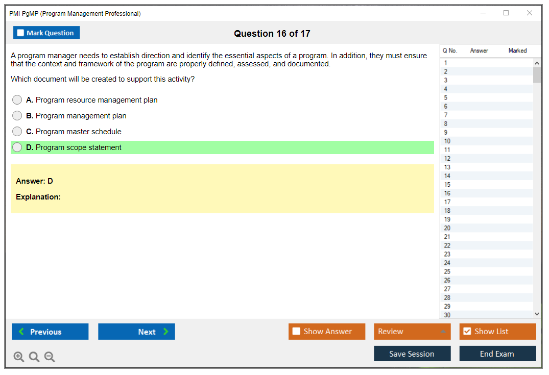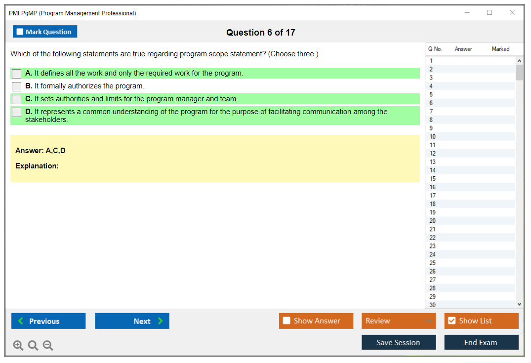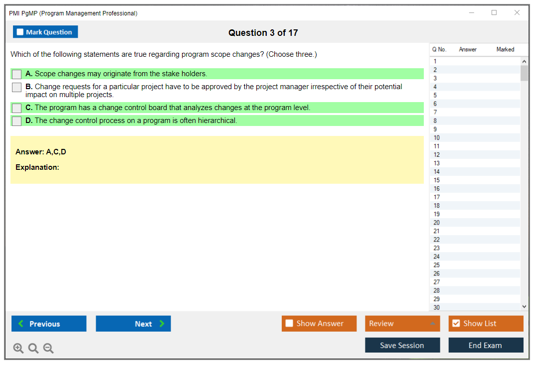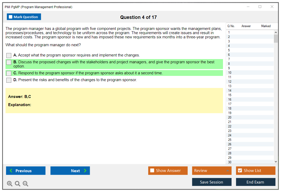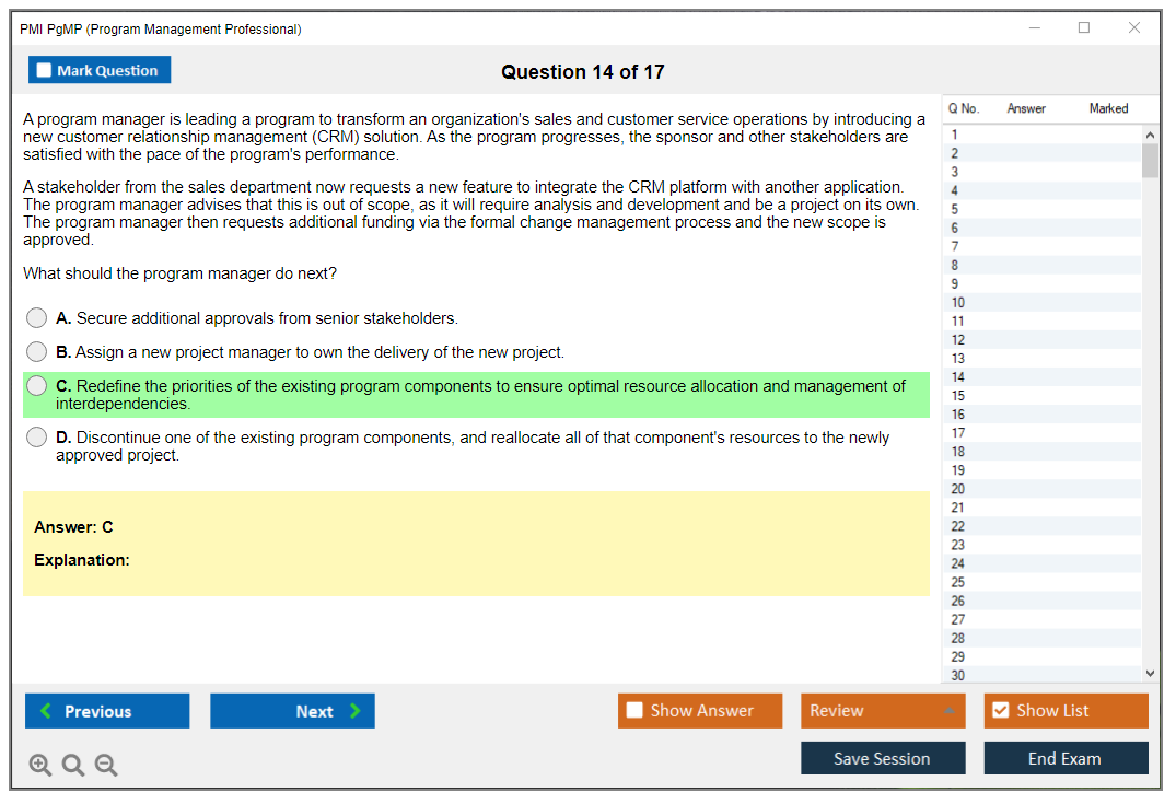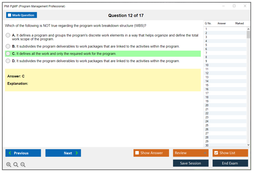 What are the Sample Questions of PMI PgMP Exam?