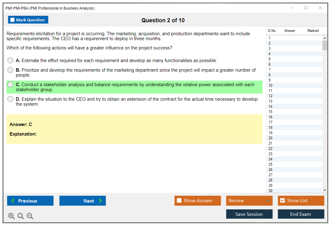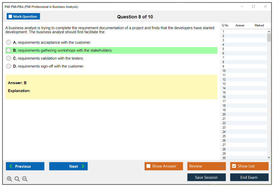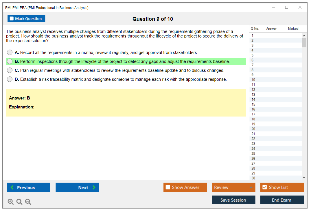 What are the Sample Questions of PMI PMI-PBA Exam?