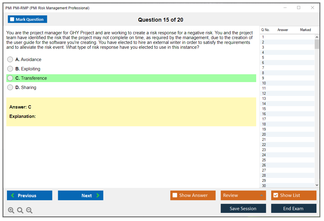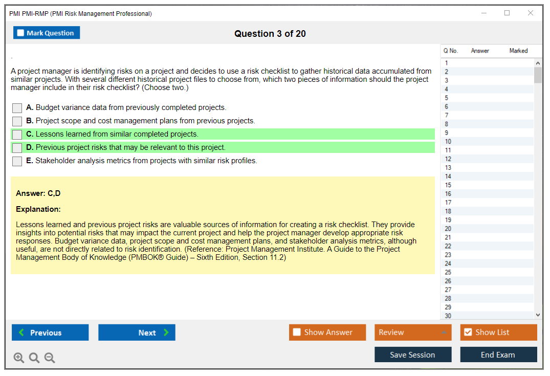 What are the Sample Questions of PMI PMI-RMP Exam?