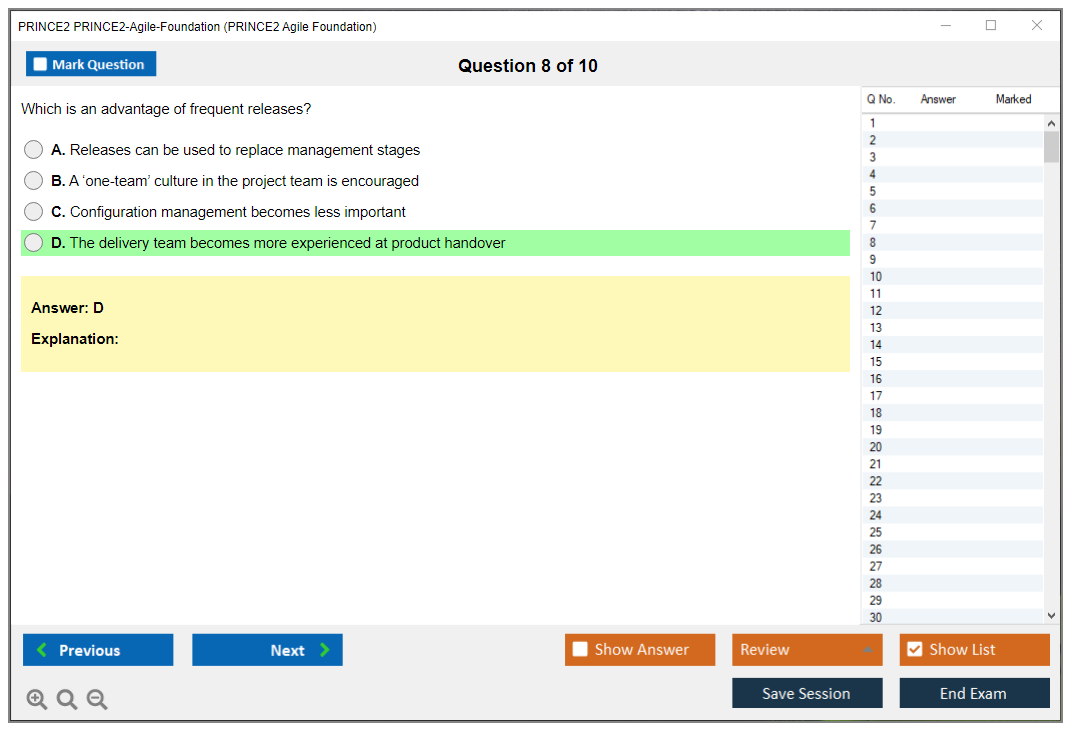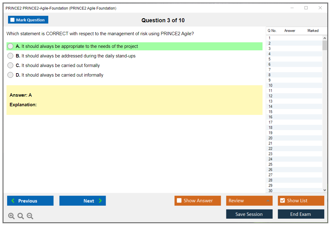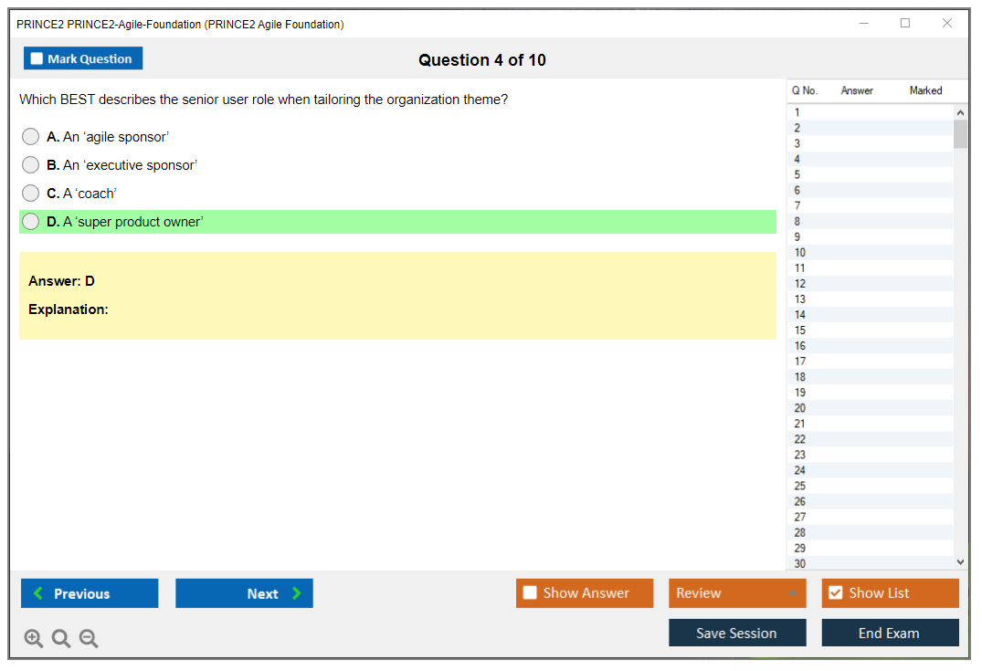 The PRINCE2-Agile-Foundation practice test from DumpsBoss is an absolute game-changer! The comprehensive questions and in-depth explanations perfectly simulate the real exam, ensuring you're thoroughly prepared. DumpsBoss truly delivers!