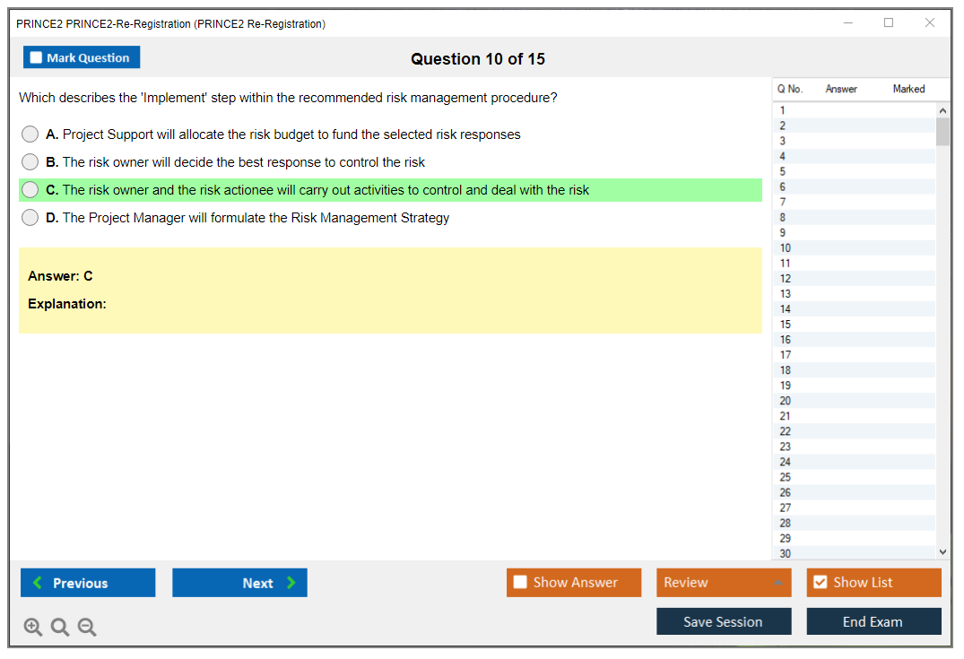 The PRINCE2 Re-Registration Exam is an assessment for individuals who need to renew their PRINCE2 Practitioner certification. This exam confirms that the candidates still possess the knowledge and understanding of the PRINCE2 methodology.