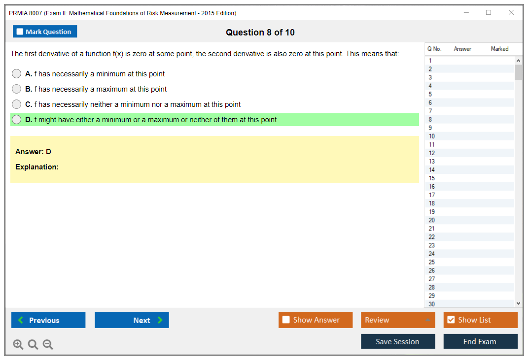The PRMIA 8007 Exam is part of the Professional Risk Manager (PRM) certification program, focusing on the mathematical foundations necessary for risk measurement.