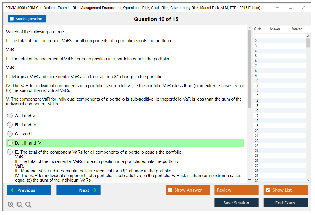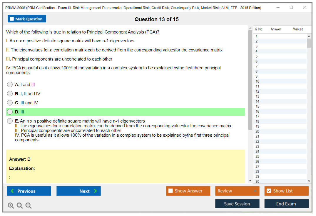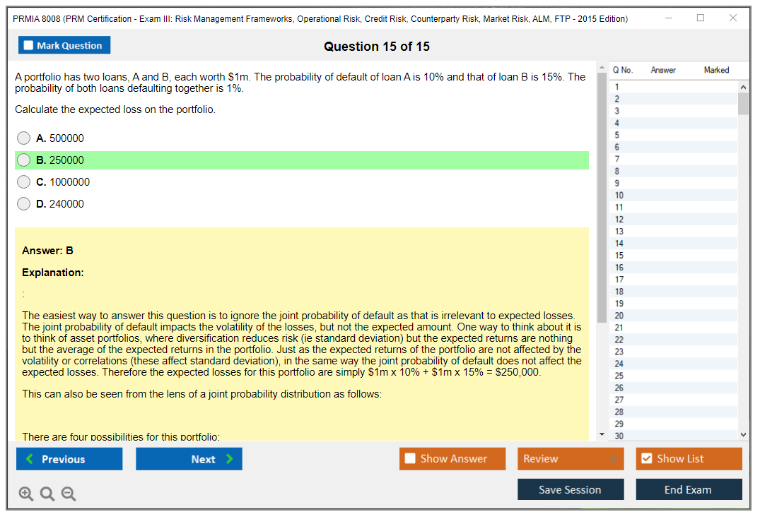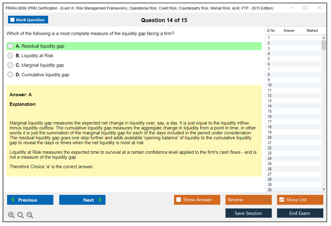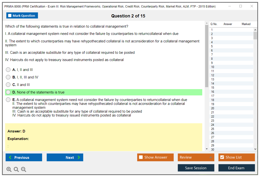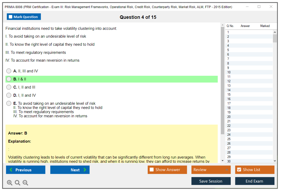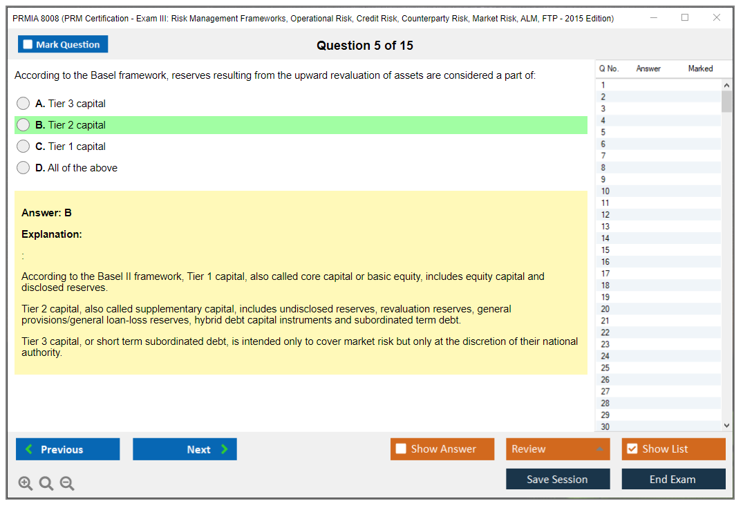 The PRMIA 8008 (PRM Certification - Exam III: Risk Management Frameworks, Operational Risk, Credit Risk, Counterparty Risk, Market Risk, ALM, FTP - 2015 Edition) is a certification exam designed to test the knowledge and skills of professionals in various risk management domains. It covers a wide range of topics including risk management frameworks, operational risk, credit risk, counterparty risk, market risk, asset-liability management (ALM), and funds transfer pricing (FTP).