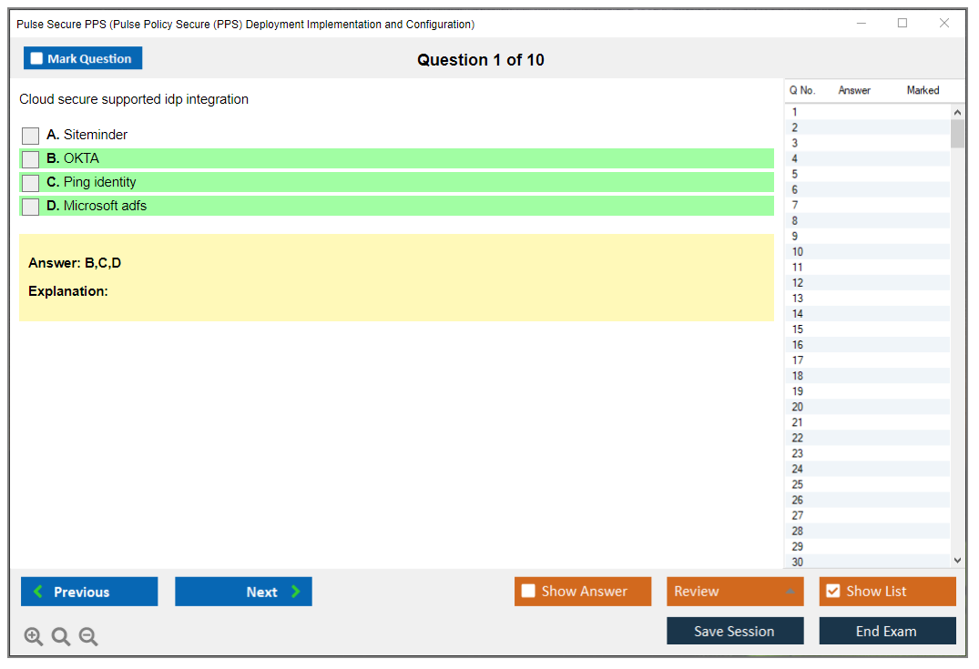 The number of questions asked in the Pulse Secure PPS Exam can vary, but typically there are around 60 to 70 questions.