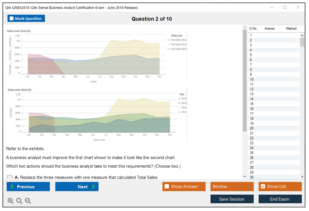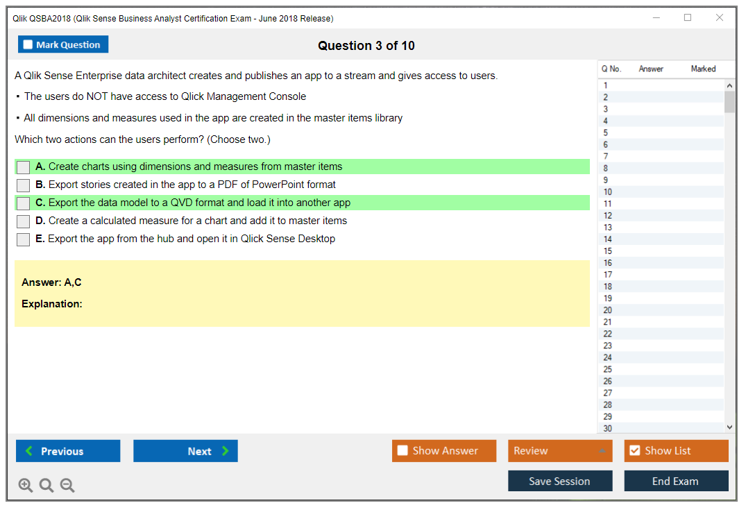 Note: Qlik QSBA2018 (Qlik Sense Business Analyst Certification Exam - June 2018 Release) will not receive any new updates.
