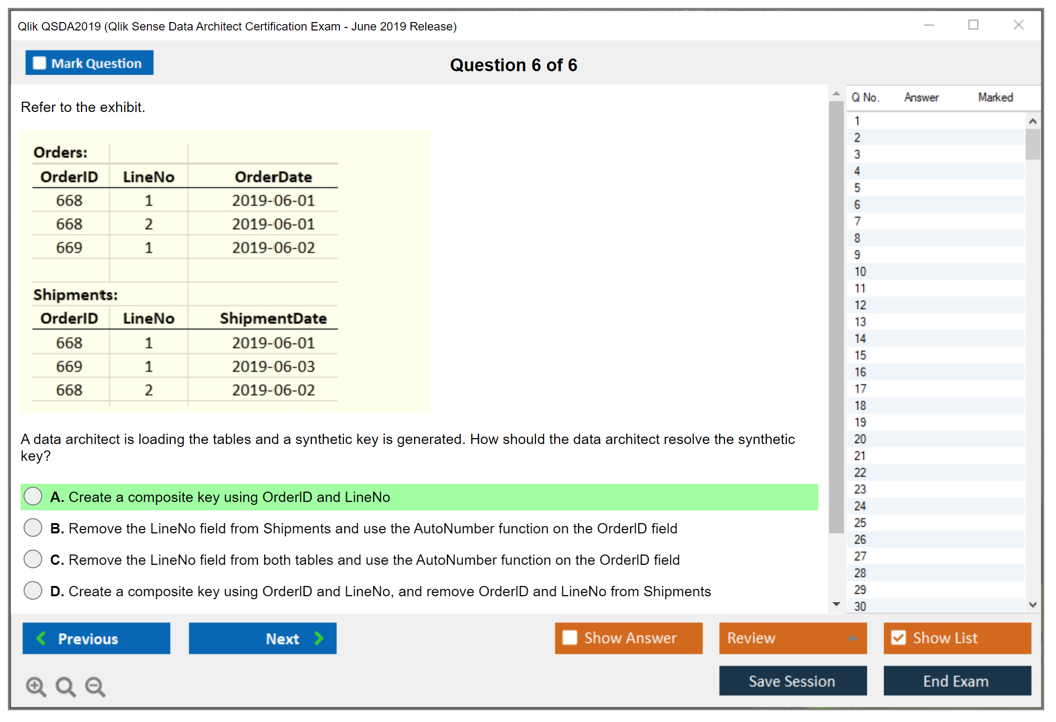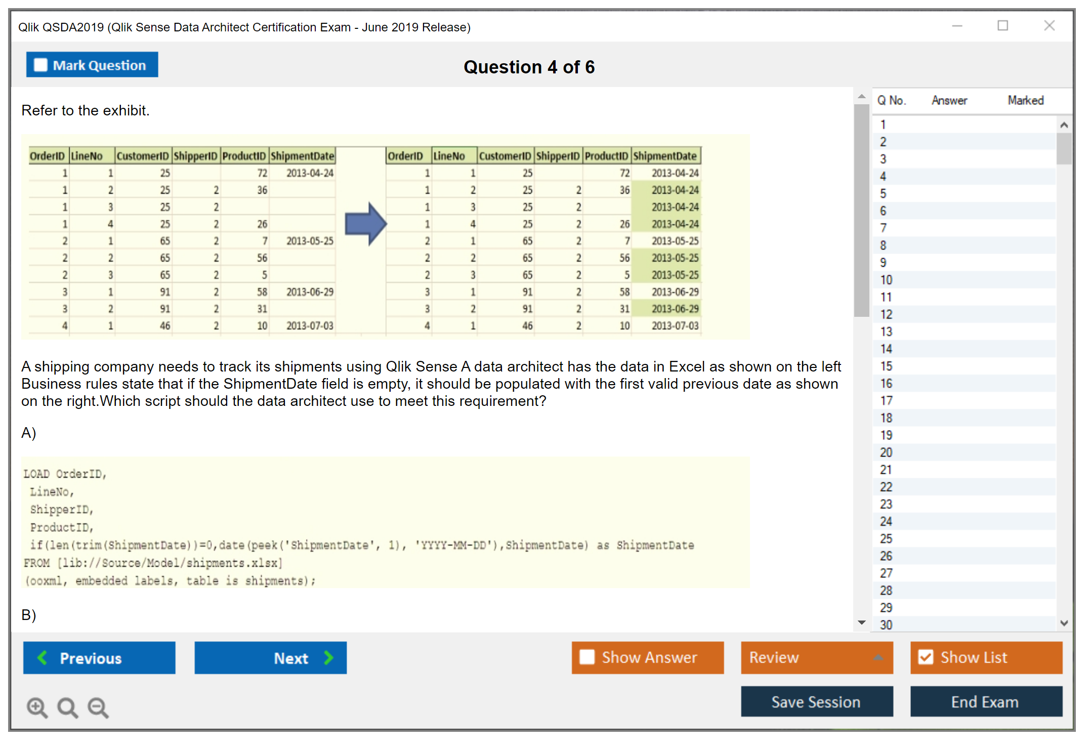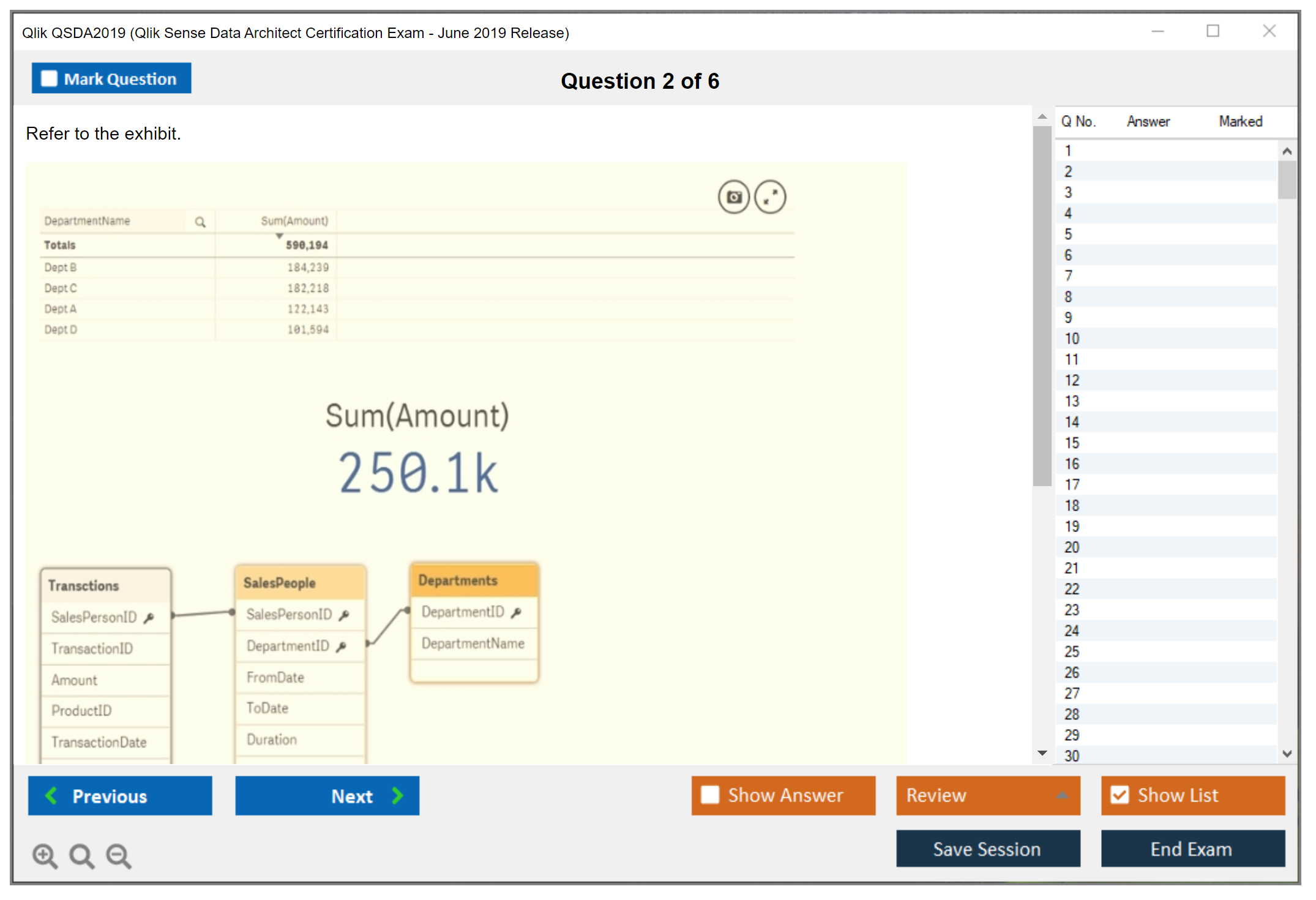 The Qlik QSDA2019 (Qlik Sense Data Architect Certification Exam - June 2019 Release) is a certification exam designed to validate the skills and knowledge of individuals in data architecture using Qlik Sense.